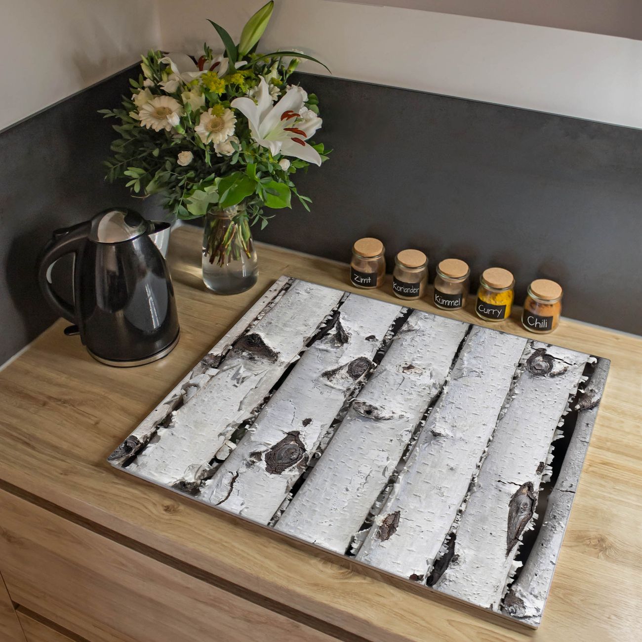 Herdabdeckplatte 1, 2 und 3 teilig Motiv Birkenrinde