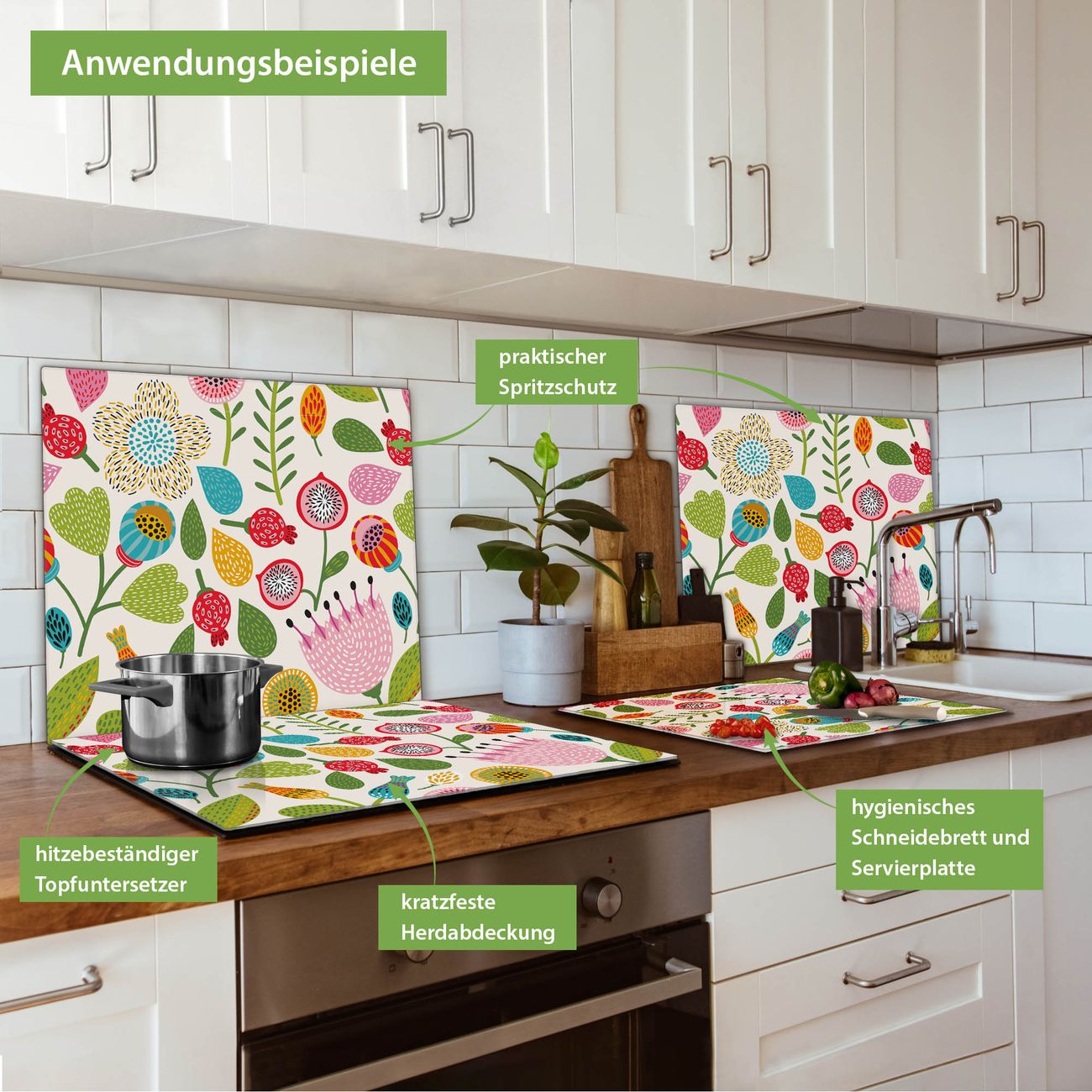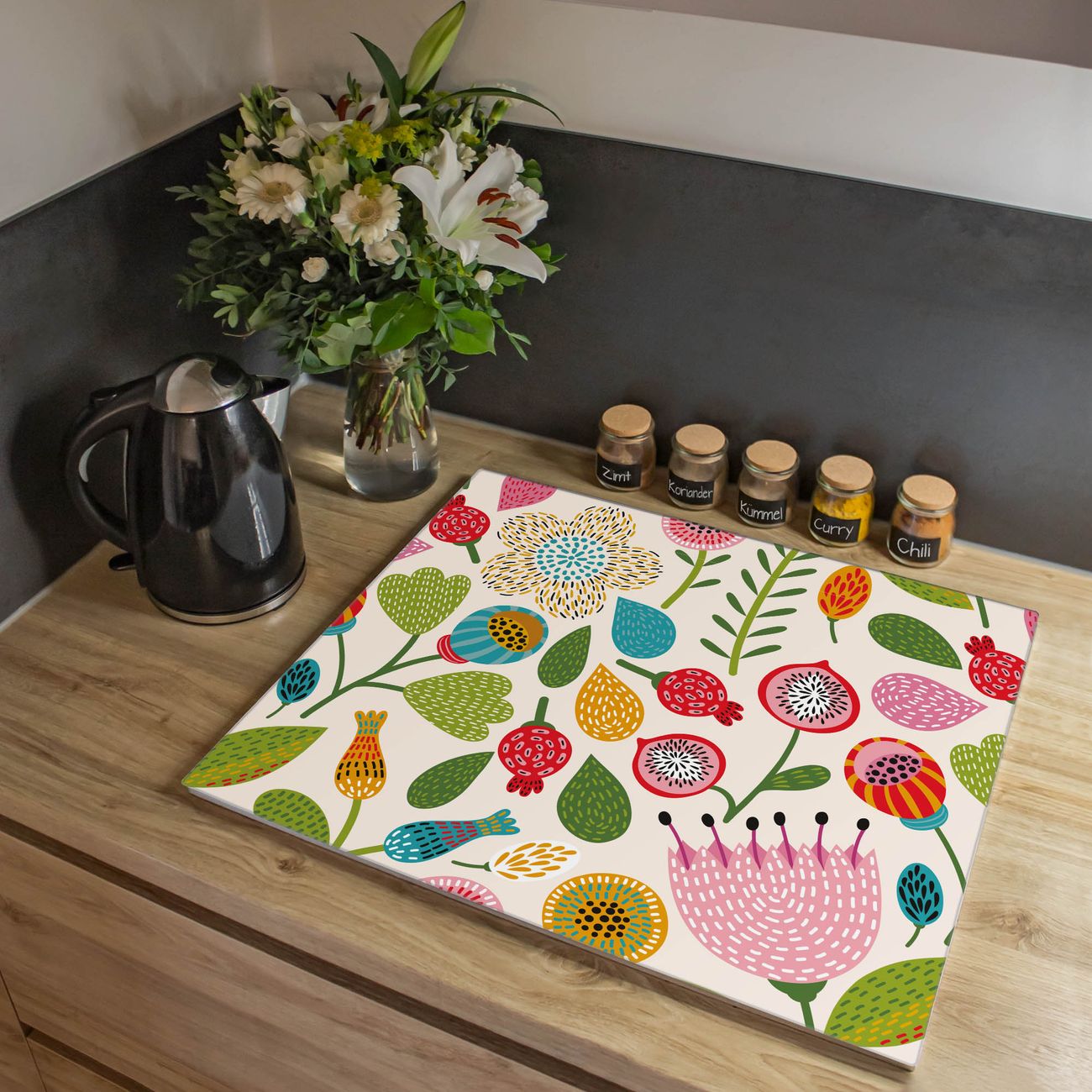 Herdabdeckplatte 1, 2 und 3 teilig Motiv Blumen Naiv