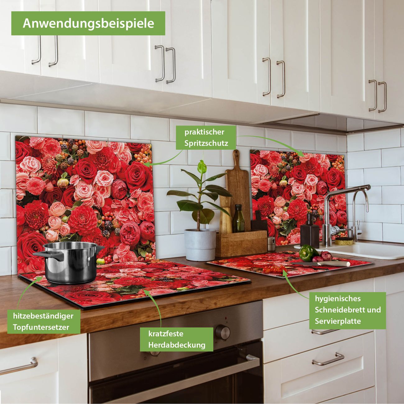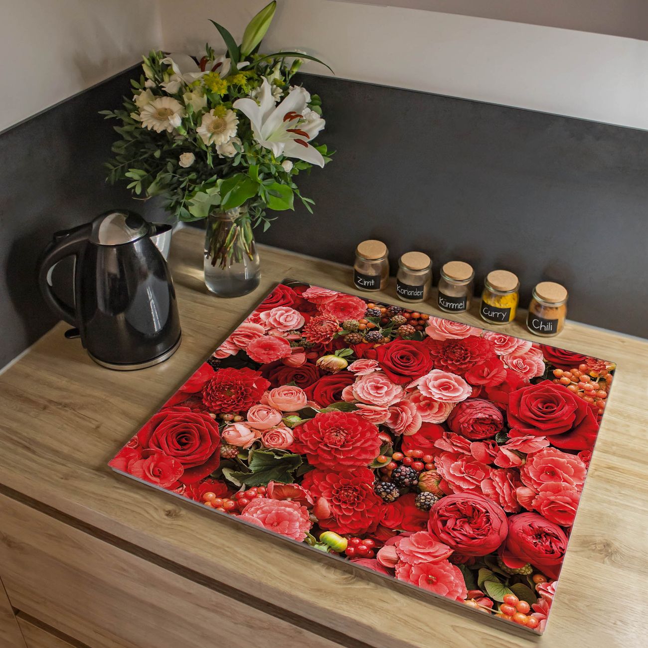 Herdabdeckplatte 1, 2 und 3 teilig Motiv Bouquet in Rot