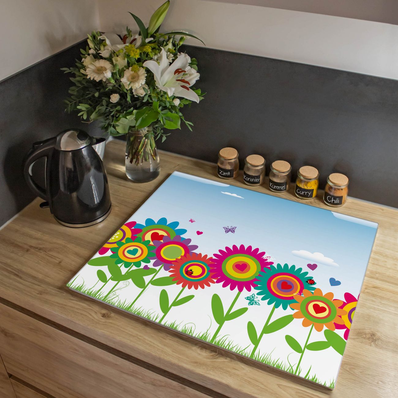Herdabdeckplatte 1, 2 und 3 teilig Motiv Bunte Blumen
