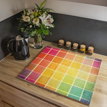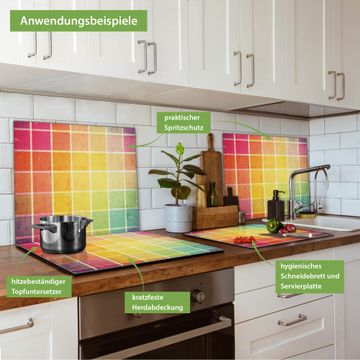 VIELSEITIG: Die Ceranfeldabdeckung ist vielseitig einsetzbar: ob als Spritzschutz hinter dem Herd für Ihre Küche oder als Glas Schneidebrett als hygienische und geruchsneutrale Unterlage. Sie können ebenfalls heiße Töpfe und Pfannen bis 100°C auf der Herdplattenabdeckung abstellen. Sie erhalten ein Multitalent für Ihre Küche. Die banjado Herdabdeckplatte aus Glas mit Motiv Bunte Glasbausteine verdeckt mit einem schönen Motiv Ihr Ceranfeld bzw. Ihren Induktionsherd. Die Herdabdeckplatte ist vielseitig einsetzbar und passt sich dabei Ihrem Einrichtungsstil an. DESIGN: Die Herdabdeckung Bunte Glasbausteine besteht aus hochwertigem, gehärtetem Glas mit einem unserer zahlreichen Motive. Sie haben die Wahl zwischen verschiedenen Maßen von einteiligen, zweiteiligen und einer dreiteiligen Herdabdeckung. Wählen Sie was zu Ihrer Einrichtung passt! DETAILS: Die Herdabdeckplatte ist vielseitig einsetzbar. Die Ecken sind für mehr Sicherheit dezent abgerundet, das Glas ist gehärtet. Sie erhalten separate Gummi Abstandshalter, damit Ihre Abdeckung rutschfest auf dem Herd steht. Diese können Sie frei positionieren, sodass die Herdabdeckung perfekt auf Ihrem Ceranfeld sitzt. BANJADO: Wir sind ein kleines Team aus dem Herzen von Sachsen und fertigen jeden Artikel nach Bestellung eigens für Sie an. Sie erhalten also keine preiswerte Importware, sondern Handarbeit. Auf Wunsch sind auch andere Farben und Größen möglich, kontakierten Sie uns gern.
