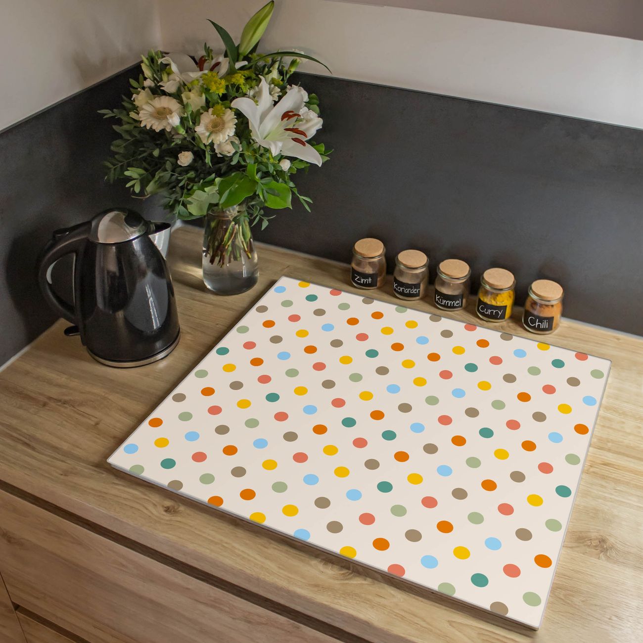 Herdabdeckplatte 1, 2 und 3 teilig Motiv Bunte Punkte