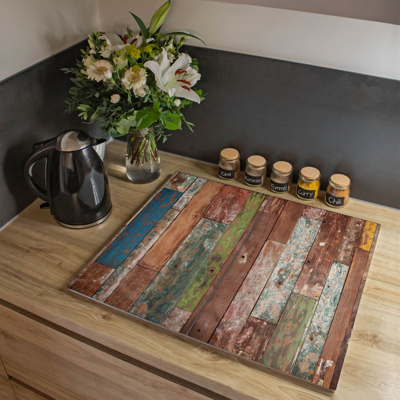 Herdabdeckplatte 1, 2 und 3 teilig Motiv Buntes Holz