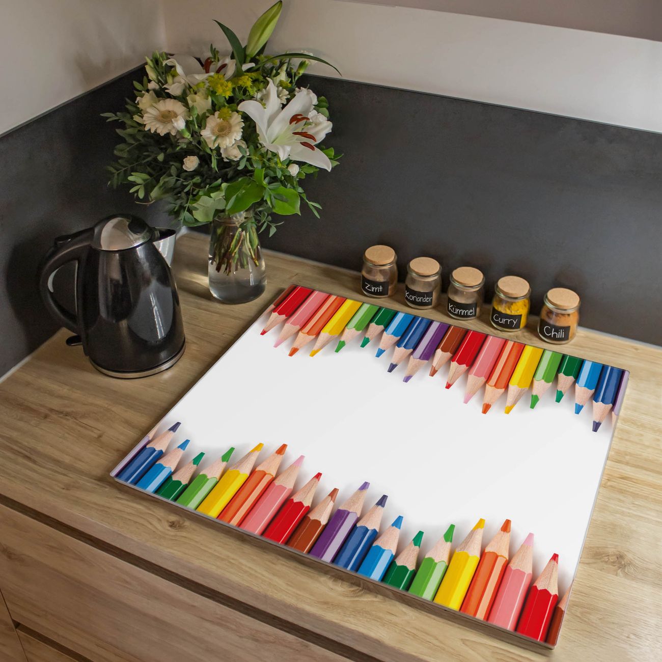 Herdabdeckplatte 1, 2 und 3 teilig Motiv Buntstifte