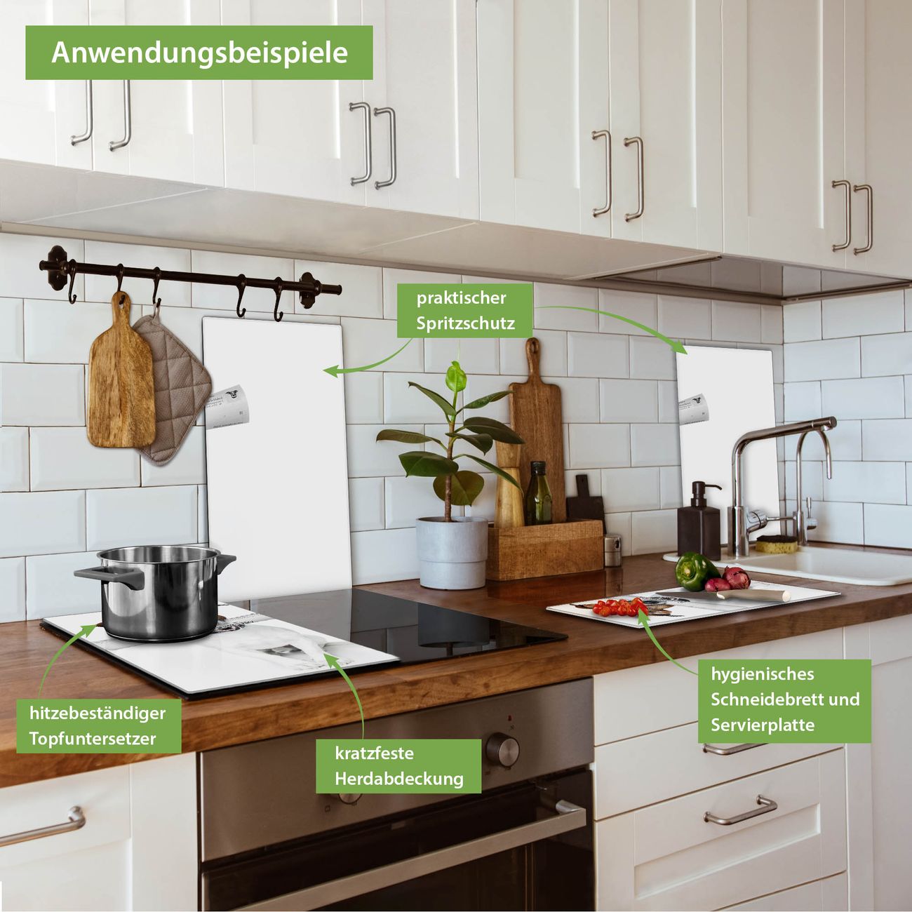 VIELSEITIG: Die Ceranfeldabdeckung ist vielseitig einsetzbar: ob als Spritzschutz hinter dem Herd für Ihre Küche oder als Glas Schneidebrett als hygienische und geruchsneutrale Unterlage. Sie können ebenfalls heiße Töpfe und Pfannen bis 100°C auf der Herdplattenabdeckung abstellen. Sie erhalten ein Multitalent für Ihre Küche. Die banjado Herdabdeckplatte aus Glas mit Motiv Business Day verdeckt mit einem schönen Motiv Ihr Ceranfeld bzw. Ihren Induktionsherd. Die Herdabdeckplatte ist vielseitig einsetzbar und passt sich dabei Ihrem Einrichtungsstil an. DESIGN: Die Herdabdeckung Business Day besteht aus hochwertigem, gehärtetem Glas mit einem unserer zahlreichen Motive. Sie haben die Wahl zwischen verschiedenen Maßen von einteiligen, zweiteiligen und einer dreiteiligen Herdabdeckung. Wählen Sie was zu Ihrer Einrichtung passt! DETAILS: Die Herdabdeckplatte ist vielseitig einsetzbar. Die Ecken sind für mehr Sicherheit dezent abgerundet, das Glas ist gehärtet. Sie erhalten separate Gummi Abstandshalter, damit Ihre Abdeckung rutschfest auf dem Herd steht. Diese können Sie frei positionieren, sodass die Herdabdeckung perfekt auf Ihrem Ceranfeld sitzt. BANJADO: Wir sind ein kleines Team aus dem Herzen von Sachsen und fertigen jeden Artikel nach Bestellung eigens für Sie an. Sie erhalten also keine preiswerte Importware, sondern Handarbeit. Auf Wunsch sind auch andere Farben und Größen möglich, kontakierten Sie uns gern.
