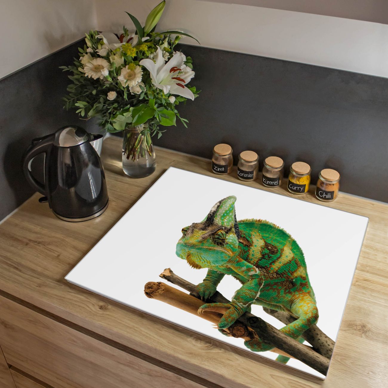 Herdabdeckplatte 1, 2 und 3 teilig Motiv Chamäleon