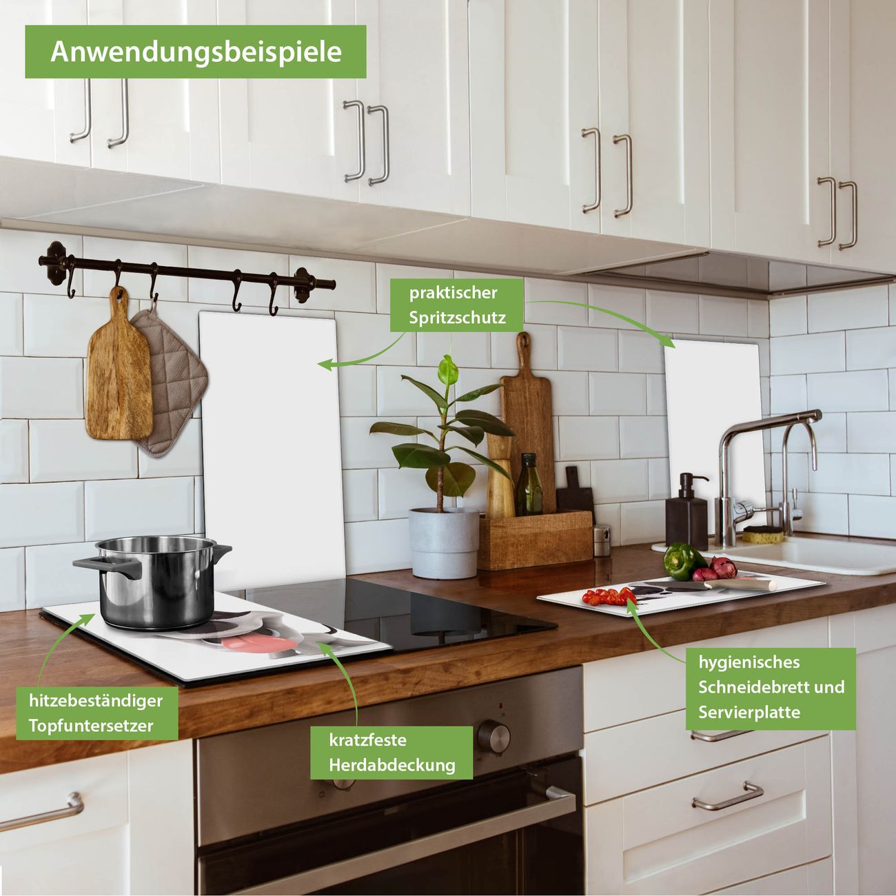 VIELSEITIG: Die Ceranfeldabdeckung ist vielseitig einsetzbar: ob als Spritzschutz hinter dem Herd für Ihre Küche oder als Glas Schneidebrett als hygienische und geruchsneutrale Unterlage. Sie können ebenfalls heiße Töpfe und Pfannen bis 100°C auf der Herdplattenabdeckung abstellen. Sie erhalten ein Multitalent für Ihre Küche. Die banjado Herdabdeckplatte aus Glas mit Motiv Comic-Hund verdeckt mit einem schönen Motiv Ihr Ceranfeld bzw. Ihren Induktionsherd. Die Herdabdeckplatte ist vielseitig einsetzbar und passt sich dabei Ihrem Einrichtungsstil an. DESIGN: Die Herdabdeckung Comic-Hund besteht aus hochwertigem, gehärtetem Glas mit einem unserer zahlreichen Motive. Sie haben die Wahl zwischen verschiedenen Maßen von einteiligen, zweiteiligen und einer dreiteiligen Herdabdeckung. Wählen Sie was zu Ihrer Einrichtung passt! DETAILS: Die Herdabdeckplatte ist vielseitig einsetzbar. Die Ecken sind für mehr Sicherheit dezent abgerundet, das Glas ist gehärtet. Sie erhalten separate Gummi Abstandshalter, damit Ihre Abdeckung rutschfest auf dem Herd steht. Diese können Sie frei positionieren, sodass die Herdabdeckung perfekt auf Ihrem Ceranfeld sitzt. BANJADO: Wir sind ein kleines Team aus dem Herzen von Sachsen und fertigen jeden Artikel nach Bestellung eigens für Sie an. Sie erhalten also keine preiswerte Importware, sondern Handarbeit. Auf Wunsch sind auch andere Farben und Größen möglich, kontakierten Sie uns gern.