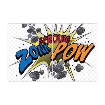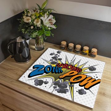 VIELSEITIG: Die Ceranfeldabdeckung ist vielseitig einsetzbar: ob als Spritzschutz hinter dem Herd für Ihre Küche oder als Glas Schneidebrett als hygienische und geruchsneutrale Unterlage. Sie können ebenfalls heiße Töpfe und Pfannen bis 100°C auf der Herdplattenabdeckung abstellen. Sie erhalten ein Multitalent für Ihre Küche. Die banjado Herdabdeckplatte aus Glas mit Motiv Comic verdeckt mit einem schönen Motiv Ihr Ceranfeld bzw. Ihren Induktionsherd. Die Herdabdeckplatte ist vielseitig einsetzbar und passt sich dabei Ihrem Einrichtungsstil an. DESIGN: Die Herdabdeckung Comic besteht aus hochwertigem, gehärtetem Glas mit einem unserer zahlreichen Motive. Sie haben die Wahl zwischen verschiedenen Maßen von einteiligen, zweiteiligen und einer dreiteiligen Herdabdeckung. Wählen Sie was zu Ihrer Einrichtung passt! DETAILS: Die Herdabdeckplatte ist vielseitig einsetzbar. Die Ecken sind für mehr Sicherheit dezent abgerundet, das Glas ist gehärtet. Sie erhalten separate Gummi Abstandshalter, damit Ihre Abdeckung rutschfest auf dem Herd steht. Diese können Sie frei positionieren, sodass die Herdabdeckung perfekt auf Ihrem Ceranfeld sitzt. BANJADO: Wir sind ein kleines Team aus dem Herzen von Sachsen und fertigen jeden Artikel nach Bestellung eigens für Sie an. Sie erhalten also keine preiswerte Importware, sondern Handarbeit. Auf Wunsch sind auch andere Farben und Größen möglich, kontakierten Sie uns gern.