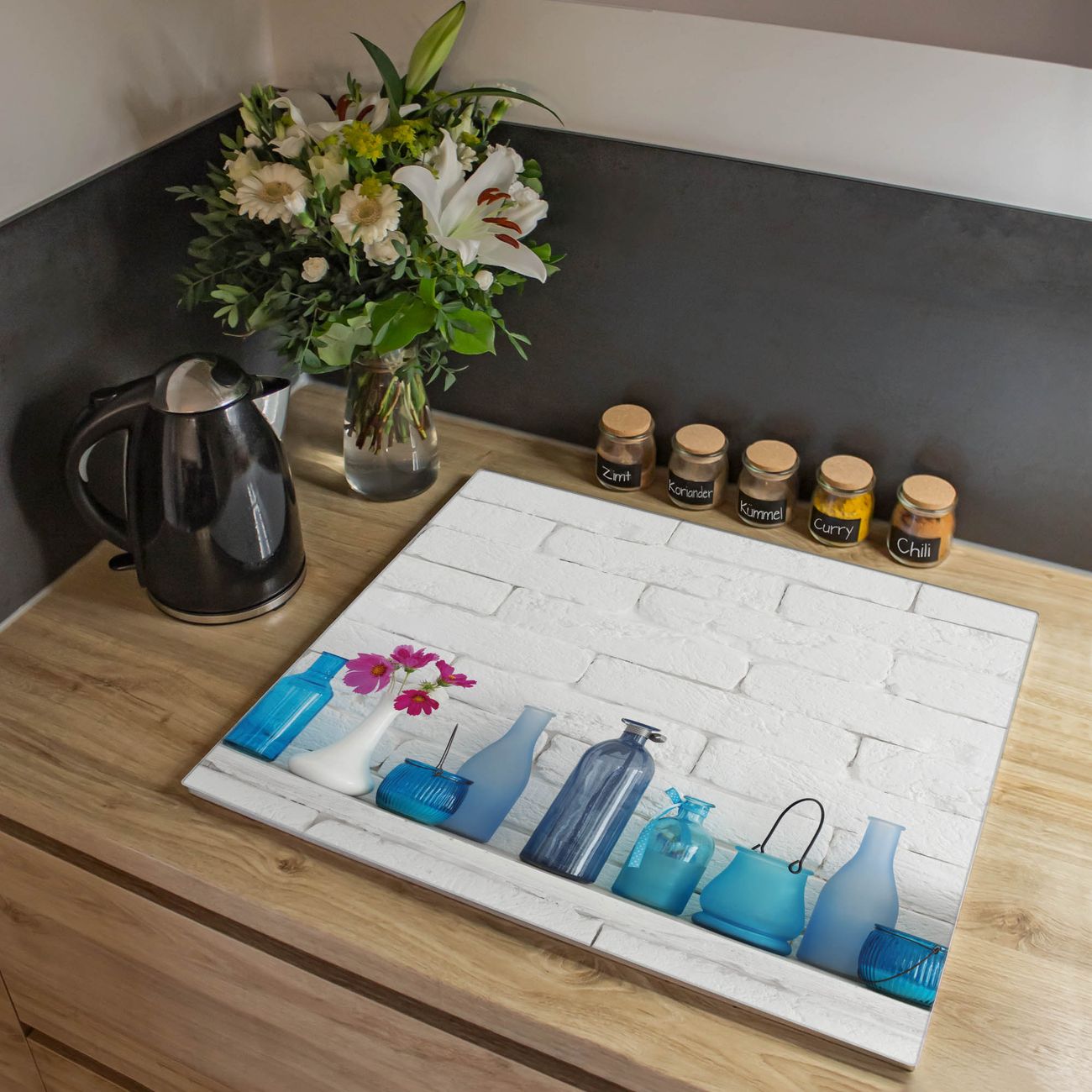 Herdabdeckplatte 1, 2 und 3 teilig Motiv Dekoartikel Blau