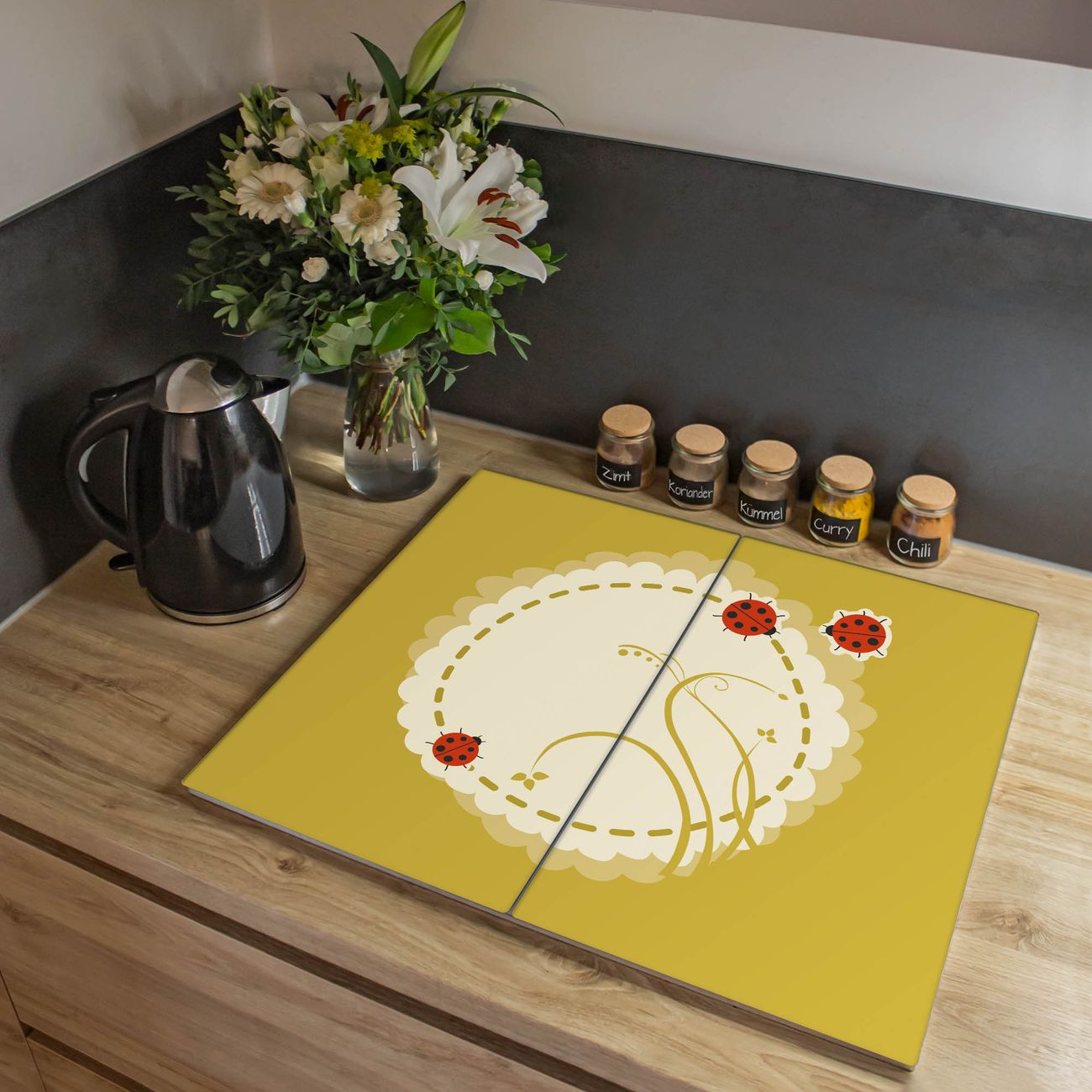 Herdabdeckplatte 1, 2 und 3 teilig Motiv Drei Marienkäfer