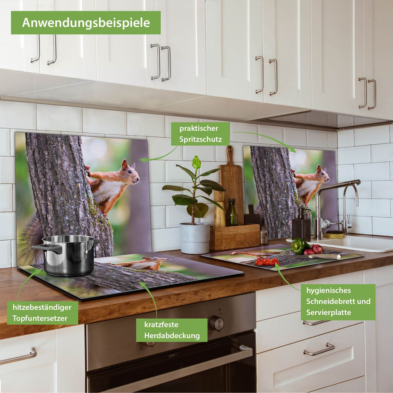 Herdabdeckplatte 1, 2 und 3 teilig Motiv Eichhörnchen