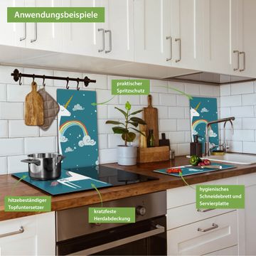 VIELSEITIG: Die Ceranfeldabdeckung ist vielseitig einsetzbar: ob als Spritzschutz hinter dem Herd für Ihre Küche oder als Glas Schneidebrett als hygienische und geruchsneutrale Unterlage. Sie können ebenfalls heiße Töpfe und Pfannen bis 100°C auf der Herdplattenabdeckung abstellen. Sie erhalten ein Multitalent für Ihre Küche. Die banjado Herdabdeckplatte aus Glas mit Motiv Einhorn verdeckt mit einem schönen Motiv Ihr Ceranfeld bzw. Ihren Induktionsherd. Die Herdabdeckplatte ist vielseitig einsetzbar und passt sich dabei Ihrem Einrichtungsstil an. DESIGN: Die Herdabdeckung Einhorn besteht aus hochwertigem, gehärtetem Glas mit einem unserer zahlreichen Motive. Sie haben die Wahl zwischen verschiedenen Maßen von einteiligen, zweiteiligen und einer dreiteiligen Herdabdeckung. Wählen Sie was zu Ihrer Einrichtung passt! DETAILS: Die Herdabdeckplatte ist vielseitig einsetzbar. Die Ecken sind für mehr Sicherheit dezent abgerundet, das Glas ist gehärtet. Sie erhalten separate Gummi Abstandshalter, damit Ihre Abdeckung rutschfest auf dem Herd steht. Diese können Sie frei positionieren, sodass die Herdabdeckung perfekt auf Ihrem Ceranfeld sitzt. BANJADO: Wir sind ein kleines Team aus dem Herzen von Sachsen und fertigen jeden Artikel nach Bestellung eigens für Sie an. Sie erhalten also keine preiswerte Importware, sondern Handarbeit. Auf Wunsch sind auch andere Farben und Größen möglich, kontakierten Sie uns gern.