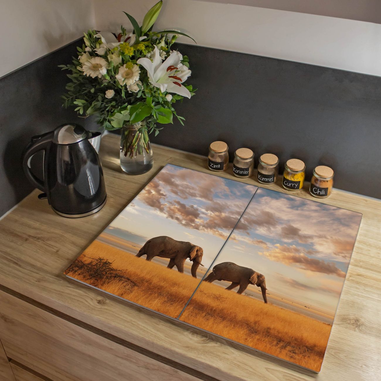 Herdabdeckplatte 1, 2 und 3 teilig Motiv Elefanten