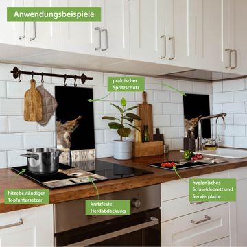 VIELSEITIG: Die Ceranfeldabdeckung ist vielseitig einsetzbar: ob als Spritzschutz hinter dem Herd für Ihre Küche oder als Glas Schneidebrett als hygienische und geruchsneutrale Unterlage. Sie können ebenfalls heiße Töpfe und Pfannen bis 100°C auf der Herdplattenabdeckung abstellen. Sie erhalten ein Multitalent für Ihre Küche. Die banjado Herdabdeckplatte aus Glas mit Motiv Esel verdeckt mit einem schönen Motiv Ihr Ceranfeld bzw. Ihren Induktionsherd. Die Herdabdeckplatte ist vielseitig einsetzbar und passt sich dabei Ihrem Einrichtungsstil an. DESIGN: Die Herdabdeckung Esel besteht aus hochwertigem, gehärtetem Glas mit einem unserer zahlreichen Motive. Sie haben die Wahl zwischen verschiedenen Maßen von einteiligen, zweiteiligen und einer dreiteiligen Herdabdeckung. Wählen Sie was zu Ihrer Einrichtung passt! DETAILS: Die Herdabdeckplatte ist vielseitig einsetzbar. Die Ecken sind für mehr Sicherheit dezent abgerundet, das Glas ist gehärtet. Sie erhalten separate Gummi Abstandshalter, damit Ihre Abdeckung rutschfest auf dem Herd steht. Diese können Sie frei positionieren, sodass die Herdabdeckung perfekt auf Ihrem Ceranfeld sitzt. BANJADO: Wir sind ein kleines Team aus dem Herzen von Sachsen und fertigen jeden Artikel nach Bestellung eigens für Sie an. Sie erhalten also keine preiswerte Importware, sondern Handarbeit. Auf Wunsch sind auch andere Farben und Größen möglich, kontakierten Sie uns gern.