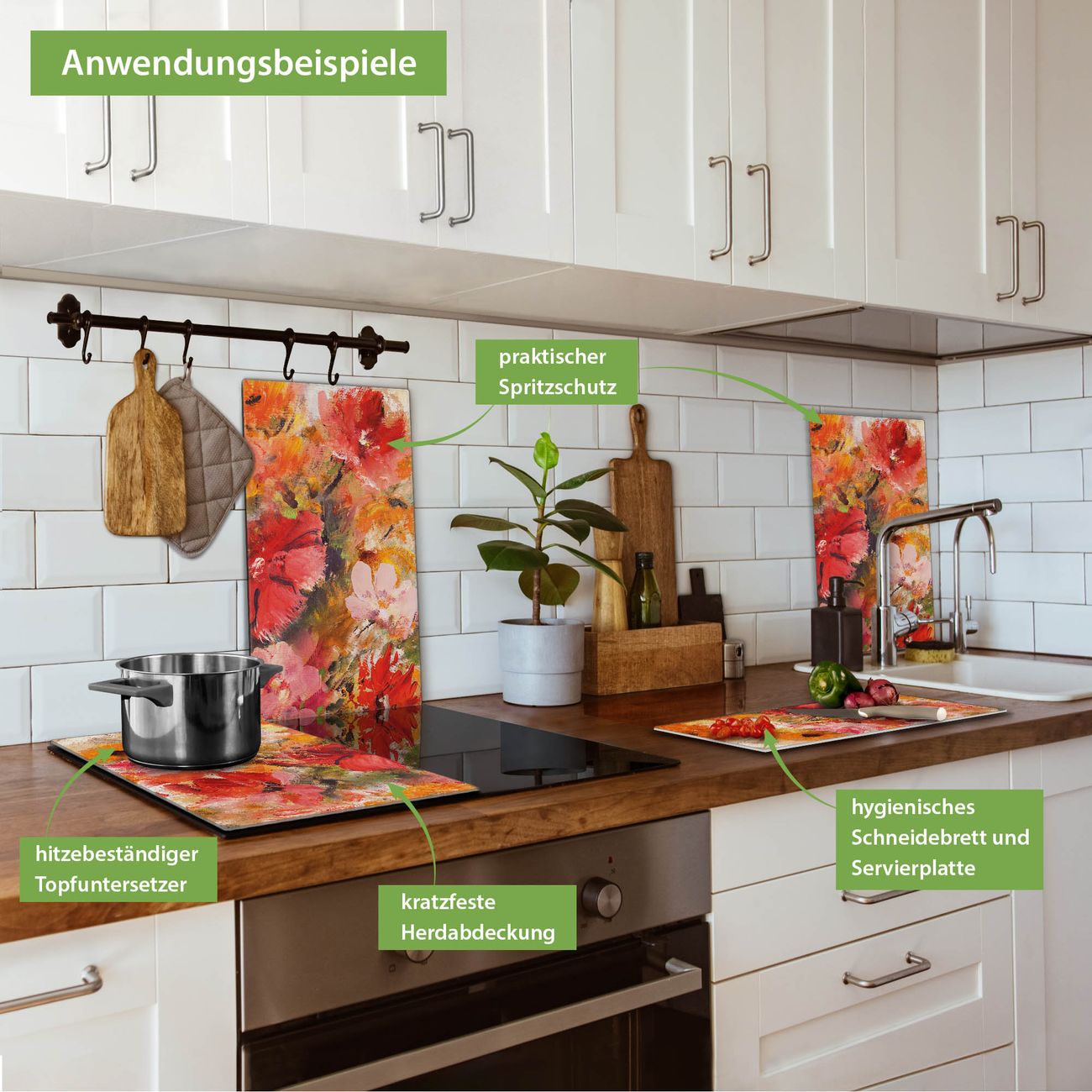 Herdabdeckplatte 1, 2 und 3 teilig Motiv Fallende Blumen