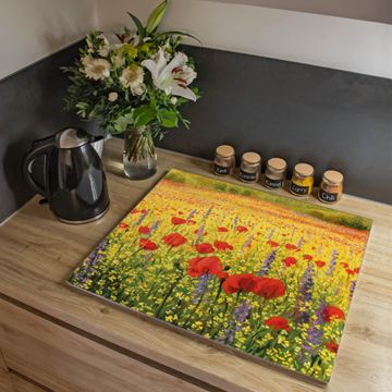 Herdabdeckplatte 1, 2 und 3 teilig Motiv Feld Mit Mohnblumen
