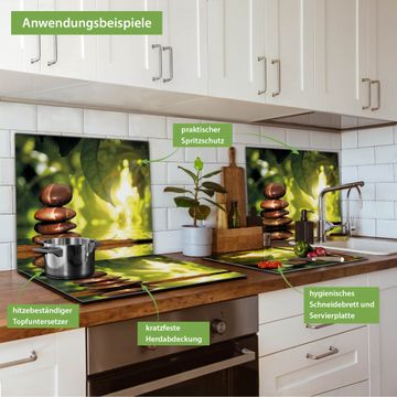 VIELSEITIG: Die Ceranfeldabdeckung ist vielseitig einsetzbar: ob als Spritzschutz hinter dem Herd für Ihre Küche oder als Glas Schneidebrett als hygienische und geruchsneutrale Unterlage. Sie können ebenfalls heiße Töpfe und Pfannen bis 100°C auf der Herdplattenabdeckung abstellen. Sie erhalten ein Multitalent für Ihre Küche. Die banjado Herdabdeckplatte aus Glas mit Motiv Feng Shui verdeckt mit einem schönen Motiv Ihr Ceranfeld bzw. Ihren Induktionsherd. Die Herdabdeckplatte ist vielseitig einsetzbar und passt sich dabei Ihrem Einrichtungsstil an. DESIGN: Die Herdabdeckung Feng Shui besteht aus hochwertigem, gehärtetem Glas mit einem unserer zahlreichen Motive. Sie haben die Wahl zwischen verschiedenen Maßen von einteiligen, zweiteiligen und einer dreiteiligen Herdabdeckung. Wählen Sie was zu Ihrer Einrichtung passt! DETAILS: Die Herdabdeckplatte ist vielseitig einsetzbar. Die Ecken sind für mehr Sicherheit dezent abgerundet, das Glas ist gehärtet. Sie erhalten separate Gummi Abstandshalter, damit Ihre Abdeckung rutschfest auf dem Herd steht. Diese können Sie frei positionieren, sodass die Herdabdeckung perfekt auf Ihrem Ceranfeld sitzt. BANJADO: Wir sind ein kleines Team aus dem Herzen von Sachsen und fertigen jeden Artikel nach Bestellung eigens für Sie an. Sie erhalten also keine preiswerte Importware, sondern Handarbeit. Auf Wunsch sind auch andere Farben und Größen möglich, kontakierten Sie uns gern.