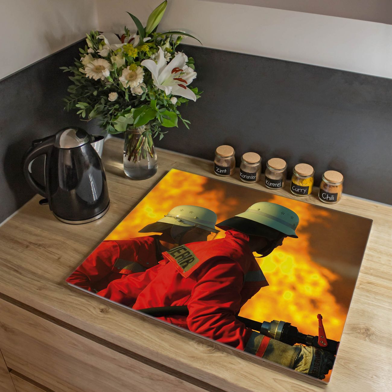 VIELSEITIG: Die Ceranfeldabdeckung ist vielseitig einsetzbar: ob als Spritzschutz hinter dem Herd für Ihre Küche oder als Glas Schneidebrett als hygienische und geruchsneutrale Unterlage. Sie können ebenfalls heiße Töpfe und Pfannen bis 100°C auf der Herdplattenabdeckung abstellen. Sie erhalten ein Multitalent für Ihre Küche. Die banjado Herdabdeckplatte aus Glas mit Motiv Feuer verdeckt mit einem schönen Motiv Ihr Ceranfeld bzw. Ihren Induktionsherd. Die Herdabdeckplatte ist vielseitig einsetzbar und passt sich dabei Ihrem Einrichtungsstil an. DESIGN: Die Herdabdeckung Feuer besteht aus hochwertigem, gehärtetem Glas mit einem unserer zahlreichen Motive. Sie haben die Wahl zwischen verschiedenen Maßen von einteiligen, zweiteiligen und einer dreiteiligen Herdabdeckung. Wählen Sie was zu Ihrer Einrichtung passt! DETAILS: Die Herdabdeckplatte ist vielseitig einsetzbar. Die Ecken sind für mehr Sicherheit dezent abgerundet, das Glas ist gehärtet. Sie erhalten separate Gummi Abstandshalter, damit Ihre Abdeckung rutschfest auf dem Herd steht. Diese können Sie frei positionieren, sodass die Herdabdeckung perfekt auf Ihrem Ceranfeld sitzt. BANJADO: Wir sind ein kleines Team aus dem Herzen von Sachsen und fertigen jeden Artikel nach Bestellung eigens für Sie an. Sie erhalten also keine preiswerte Importware, sondern Handarbeit. Auf Wunsch sind auch andere Farben und Größen möglich, kontakierten Sie uns gern.