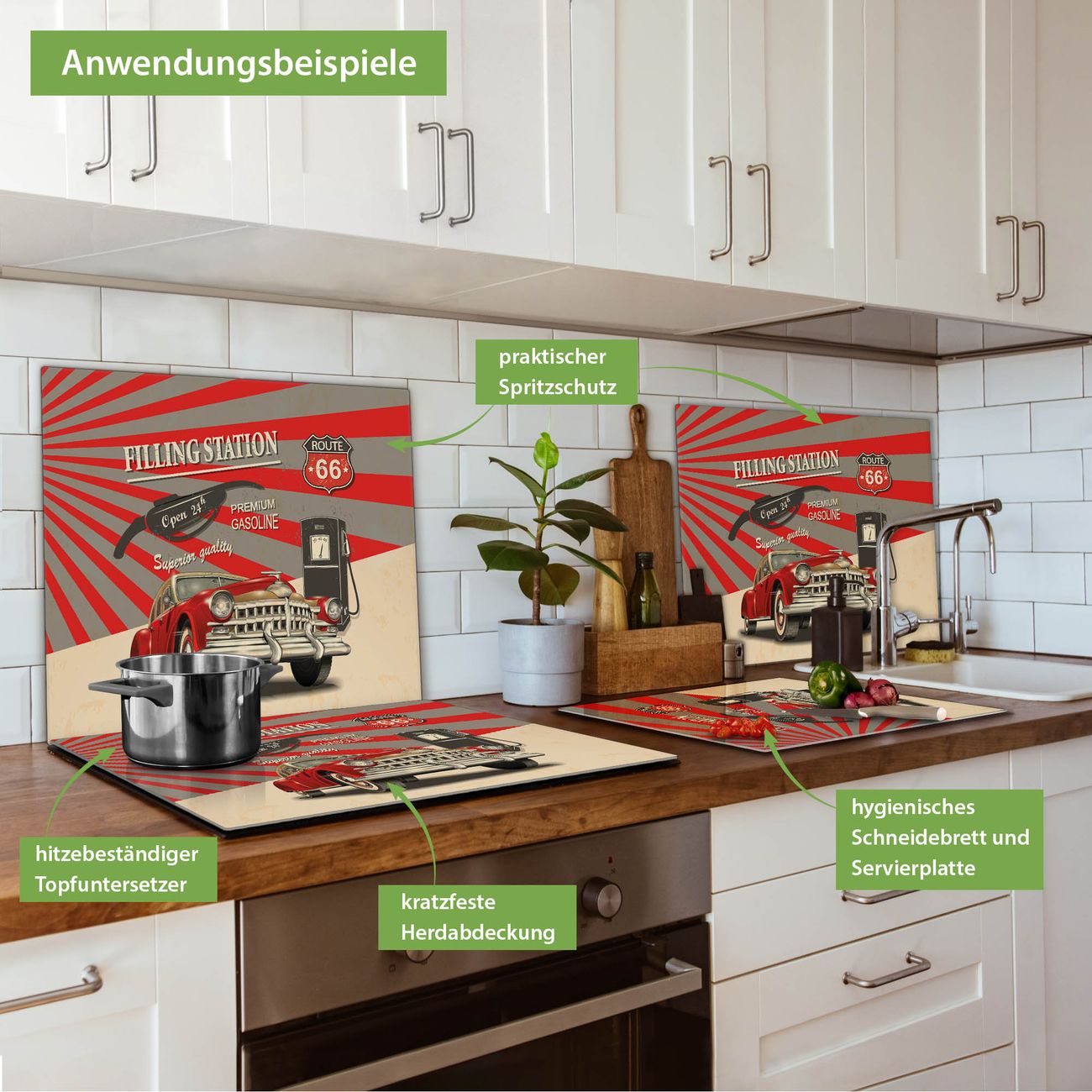 Herdabdeckplatte 1, 2 und 3 teilig Motiv Filling Station