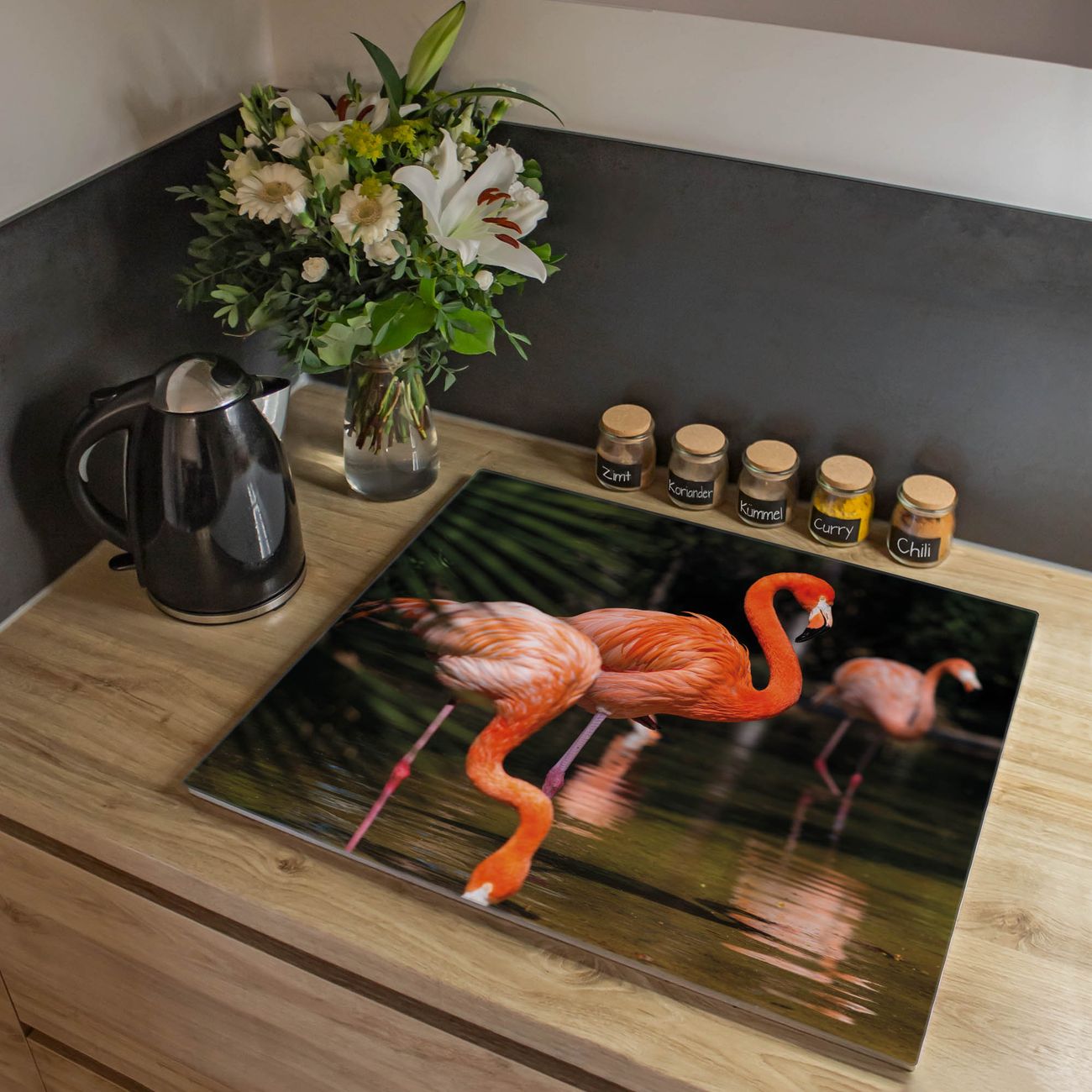 Herdabdeckplatte 1, 2 und 3 teilig Motiv Flamingo