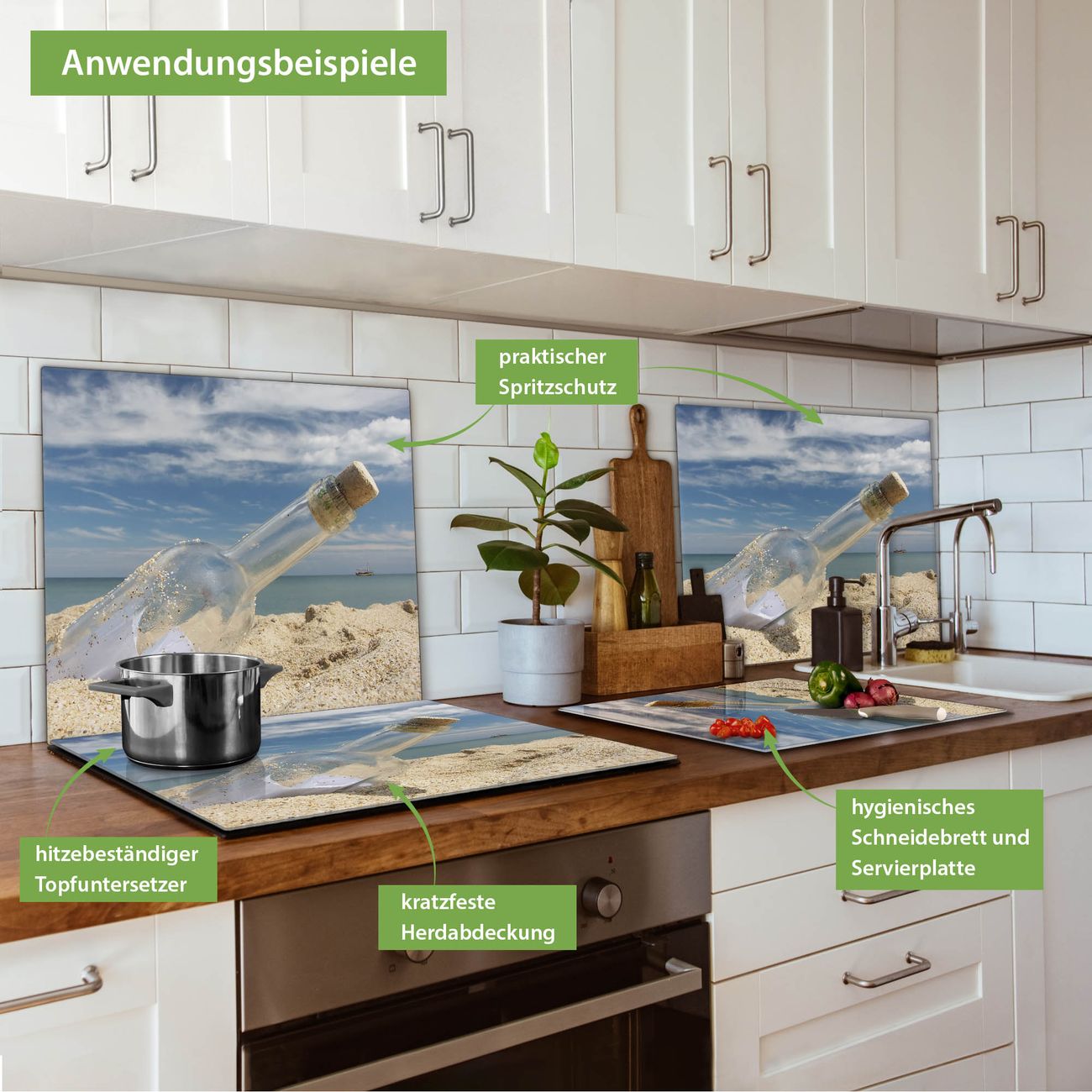 Herdabdeckplatte 1, 2 und 3 teilig Motiv Flaschenpost