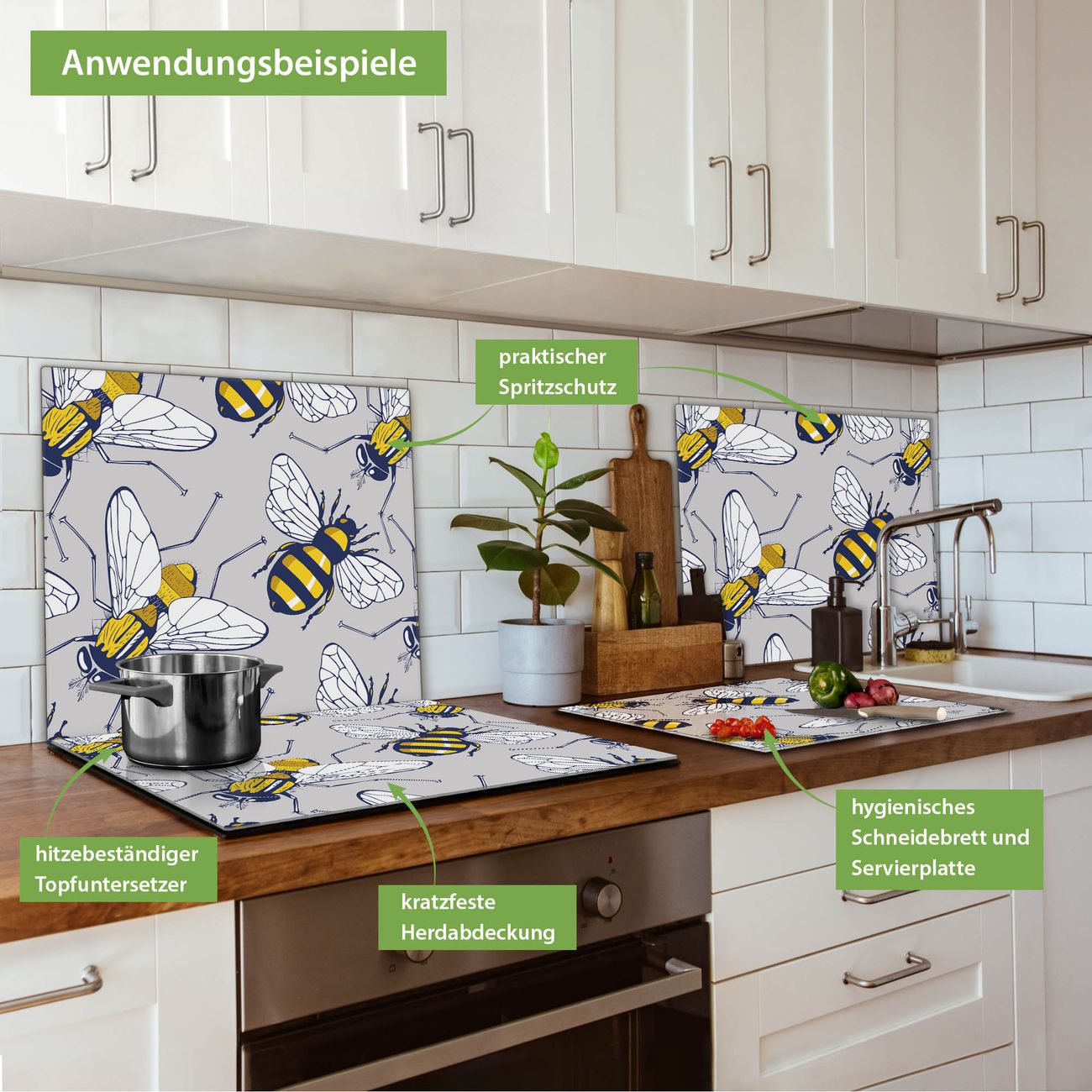 Herdabdeckplatte 1, 2 und 3 teilig Motiv Fliegen und Bienen