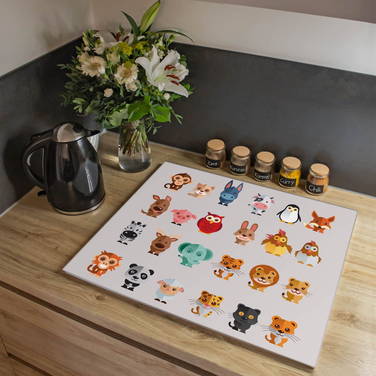 VIELSEITIG: Die Ceranfeldabdeckung ist vielseitig einsetzbar: ob als Spritzschutz hinter dem Herd für Ihre Küche oder als Glas Schneidebrett als hygienische und geruchsneutrale Unterlage. Sie können ebenfalls heiße Töpfe und Pfannen bis 100°C auf der Herdplattenabdeckung abstellen. Sie erhalten ein Multitalent für Ihre Küche. Die banjado Herdabdeckplatte aus Glas mit Motiv Freunde verdeckt mit einem schönen Motiv Ihr Ceranfeld bzw. Ihren Induktionsherd. Die Herdabdeckplatte ist vielseitig einsetzbar und passt sich dabei Ihrem Einrichtungsstil an. DESIGN: Die Herdabdeckung Freunde besteht aus hochwertigem, gehärtetem Glas mit einem unserer zahlreichen Motive. Sie haben die Wahl zwischen verschiedenen Maßen von einteiligen, zweiteiligen und einer dreiteiligen Herdabdeckung. Wählen Sie was zu Ihrer Einrichtung passt! DETAILS: Die Herdabdeckplatte ist vielseitig einsetzbar. Die Ecken sind für mehr Sicherheit dezent abgerundet, das Glas ist gehärtet. Sie erhalten separate Gummi Abstandshalter, damit Ihre Abdeckung rutschfest auf dem Herd steht. Diese können Sie frei positionieren, sodass die Herdabdeckung perfekt auf Ihrem Ceranfeld sitzt. BANJADO: Wir sind ein kleines Team aus dem Herzen von Sachsen und fertigen jeden Artikel nach Bestellung eigens für Sie an. Sie erhalten also keine preiswerte Importware, sondern Handarbeit. Auf Wunsch sind auch andere Farben und Größen möglich, kontakierten Sie uns gern.