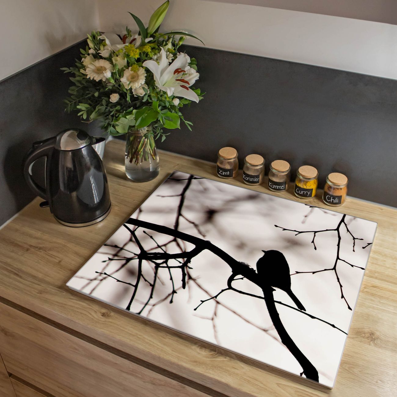 Herdabdeckplatte 1, 2 und 3 teilig Motiv Früher Vogel