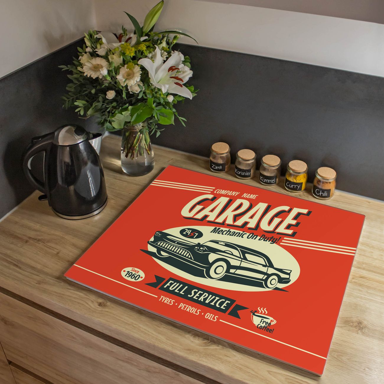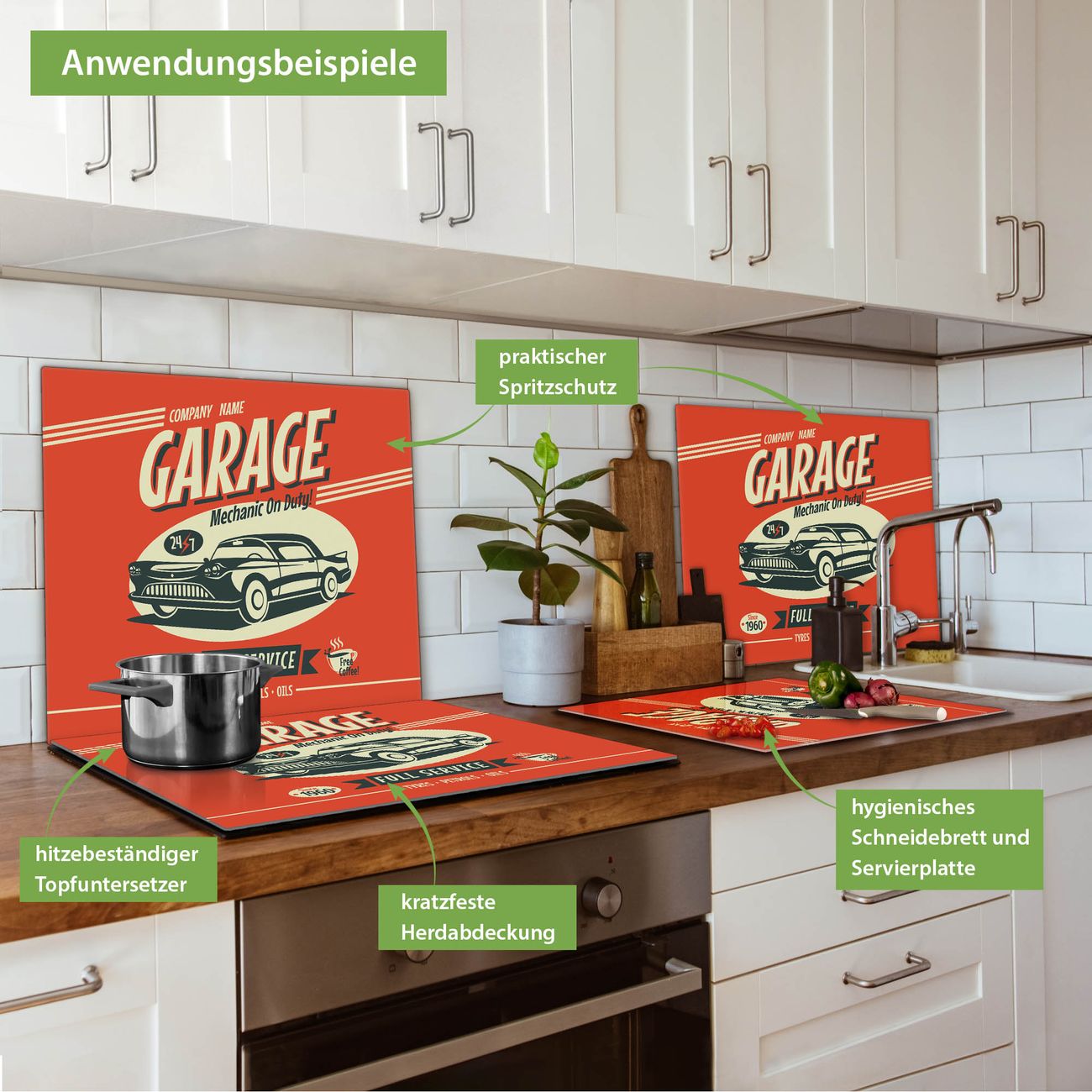VIELSEITIG: Die Ceranfeldabdeckung ist vielseitig einsetzbar: ob als Spritzschutz hinter dem Herd für Ihre Küche oder als Glas Schneidebrett als hygienische und geruchsneutrale Unterlage. Sie können ebenfalls heiße Töpfe und Pfannen bis 100°C auf der Herdplattenabdeckung abstellen. Sie erhalten ein Multitalent für Ihre Küche. Die banjado Herdabdeckplatte aus Glas mit Motiv Full Service verdeckt mit einem schönen Motiv Ihr Ceranfeld bzw. Ihren Induktionsherd. Die Herdabdeckplatte ist vielseitig einsetzbar und passt sich dabei Ihrem Einrichtungsstil an. DESIGN: Die Herdabdeckung Full Service besteht aus hochwertigem, gehärtetem Glas mit einem unserer zahlreichen Motive. Sie haben die Wahl zwischen verschiedenen Maßen von einteiligen, zweiteiligen und einer dreiteiligen Herdabdeckung. Wählen Sie was zu Ihrer Einrichtung passt! DETAILS: Die Herdabdeckplatte ist vielseitig einsetzbar. Die Ecken sind für mehr Sicherheit dezent abgerundet, das Glas ist gehärtet. Sie erhalten separate Gummi Abstandshalter, damit Ihre Abdeckung rutschfest auf dem Herd steht. Diese können Sie frei positionieren, sodass die Herdabdeckung perfekt auf Ihrem Ceranfeld sitzt. BANJADO: Wir sind ein kleines Team aus dem Herzen von Sachsen und fertigen jeden Artikel nach Bestellung eigens für Sie an. Sie erhalten also keine preiswerte Importware, sondern Handarbeit. Auf Wunsch sind auch andere Farben und Größen möglich, kontakierten Sie uns gern.