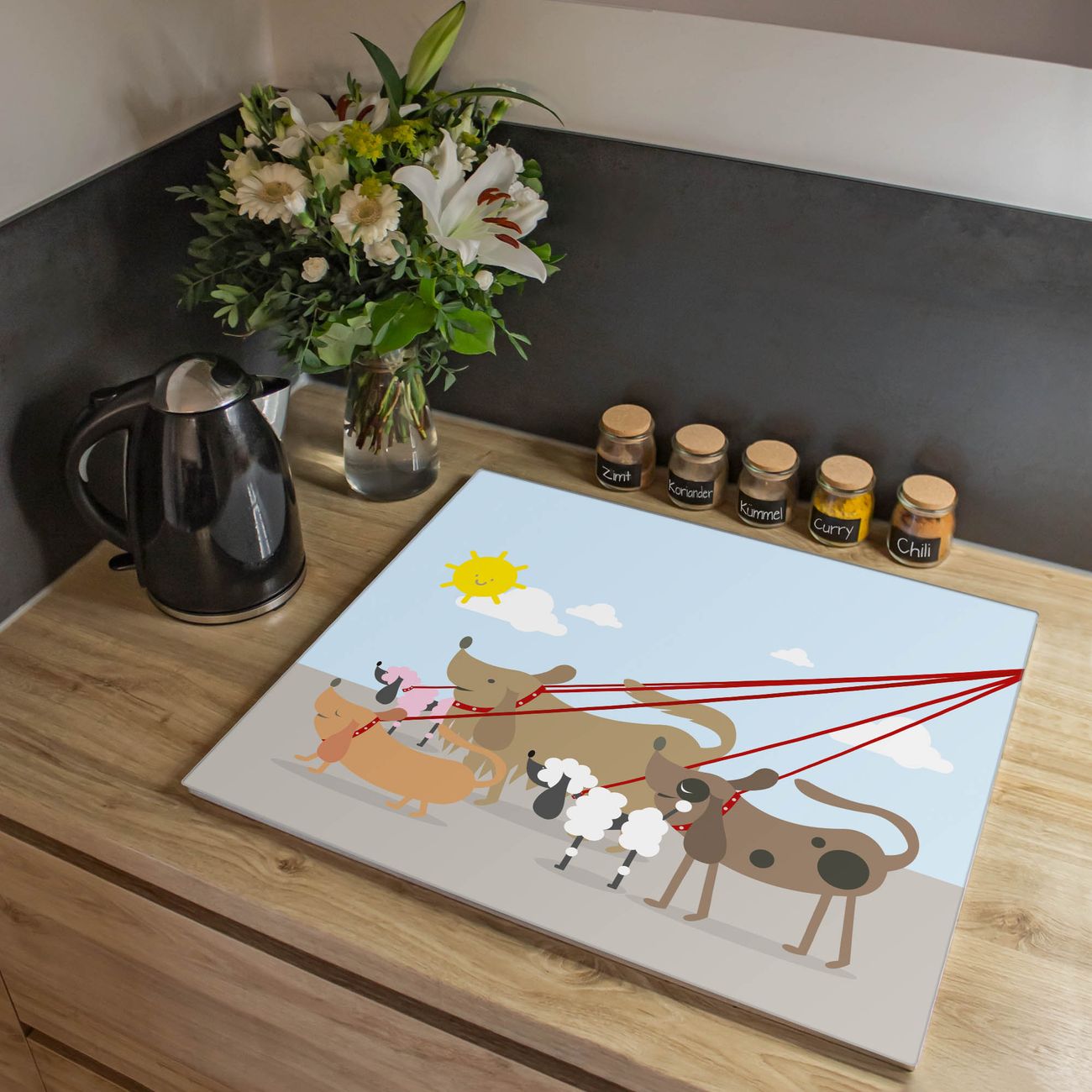 Herdabdeckplatte 1, 2 und 3 teilig Motiv Gassi Gehen