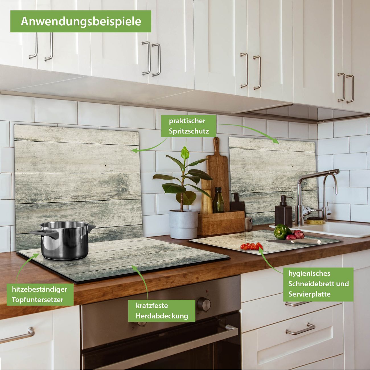 VIELSEITIG: Die Ceranfeldabdeckung ist vielseitig einsetzbar: ob als Spritzschutz hinter dem Herd für Ihre Küche oder als Glas Schneidebrett als hygienische und geruchsneutrale Unterlage. Sie können ebenfalls heiße Töpfe und Pfannen bis 100°C auf der Herdplattenabdeckung abstellen. Sie erhalten ein Multitalent für Ihre Küche. Die banjado Herdabdeckplatte aus Glas mit Motiv Graue Planken verdeckt mit einem schönen Motiv Ihr Ceranfeld bzw. Ihren Induktionsherd. Die Herdabdeckplatte ist vielseitig einsetzbar und passt sich dabei Ihrem Einrichtungsstil an. DESIGN: Die Herdabdeckung Graue Planken besteht aus hochwertigem, gehärtetem Glas mit einem unserer zahlreichen Motive. Sie haben die Wahl zwischen verschiedenen Maßen von einteiligen, zweiteiligen und einer dreiteiligen Herdabdeckung. Wählen Sie was zu Ihrer Einrichtung passt! DETAILS: Die Herdabdeckplatte ist vielseitig einsetzbar. Die Ecken sind für mehr Sicherheit dezent abgerundet, das Glas ist gehärtet. Sie erhalten separate Gummi Abstandshalter, damit Ihre Abdeckung rutschfest auf dem Herd steht. Diese können Sie frei positionieren, sodass die Herdabdeckung perfekt auf Ihrem Ceranfeld sitzt. BANJADO: Wir sind ein kleines Team aus dem Herzen von Sachsen und fertigen jeden Artikel nach Bestellung eigens für Sie an. Sie erhalten also keine preiswerte Importware, sondern Handarbeit. Auf Wunsch sind auch andere Farben und Größen möglich, kontakierten Sie uns gern.