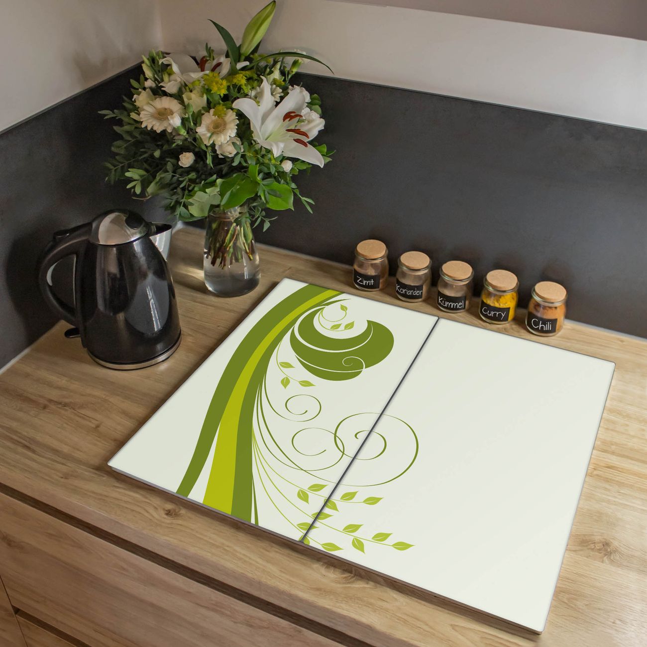 Herdabdeckplatte 1, 2 und 3 teilig Motiv Green Swirl
