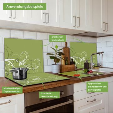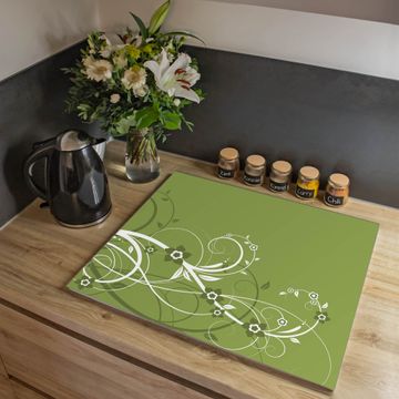 Herdabdeckplatte 1, 2 und 3 teilig Motiv Grüne Blüten