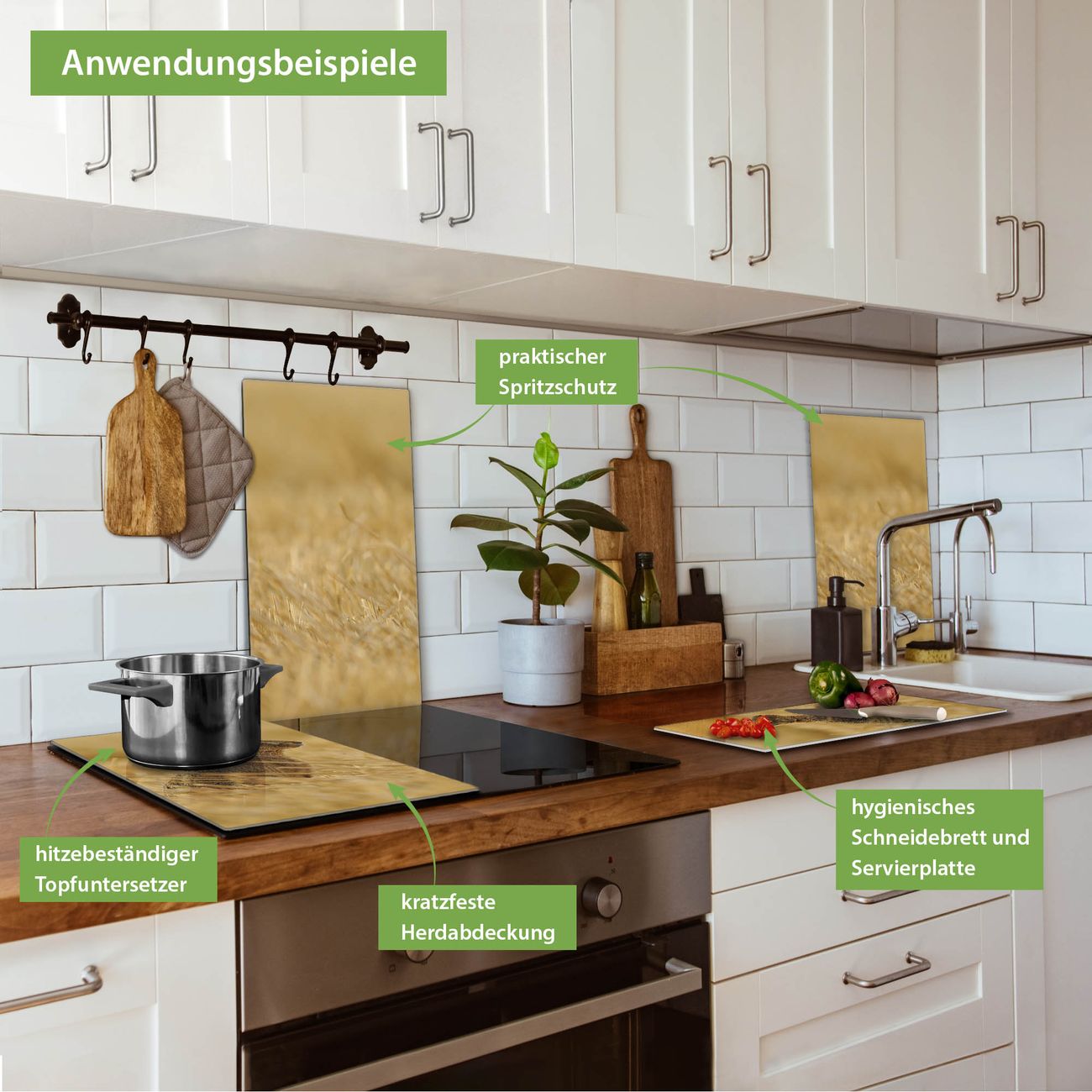 VIELSEITIG: Die Ceranfeldabdeckung ist vielseitig einsetzbar: ob als Spritzschutz hinter dem Herd für Ihre Küche oder als Glas Schneidebrett als hygienische und geruchsneutrale Unterlage. Sie können ebenfalls heiße Töpfe und Pfannen bis 100°C auf der Herdplattenabdeckung abstellen. Sie erhalten ein Multitalent für Ihre Küche. Die banjado Herdabdeckplatte aus Glas mit Motiv Hase verdeckt mit einem schönen Motiv Ihr Ceranfeld bzw. Ihren Induktionsherd. Die Herdabdeckplatte ist vielseitig einsetzbar und passt sich dabei Ihrem Einrichtungsstil an. DESIGN: Die Herdabdeckung Hase besteht aus hochwertigem, gehärtetem Glas mit einem unserer zahlreichen Motive. Sie haben die Wahl zwischen verschiedenen Maßen von einteiligen, zweiteiligen und einer dreiteiligen Herdabdeckung. Wählen Sie was zu Ihrer Einrichtung passt! DETAILS: Die Herdabdeckplatte ist vielseitig einsetzbar. Die Ecken sind für mehr Sicherheit dezent abgerundet, das Glas ist gehärtet. Sie erhalten separate Gummi Abstandshalter, damit Ihre Abdeckung rutschfest auf dem Herd steht. Diese können Sie frei positionieren, sodass die Herdabdeckung perfekt auf Ihrem Ceranfeld sitzt. BANJADO: Wir sind ein kleines Team aus dem Herzen von Sachsen und fertigen jeden Artikel nach Bestellung eigens für Sie an. Sie erhalten also keine preiswerte Importware, sondern Handarbeit. Auf Wunsch sind auch andere Farben und Größen möglich, kontakierten Sie uns gern.