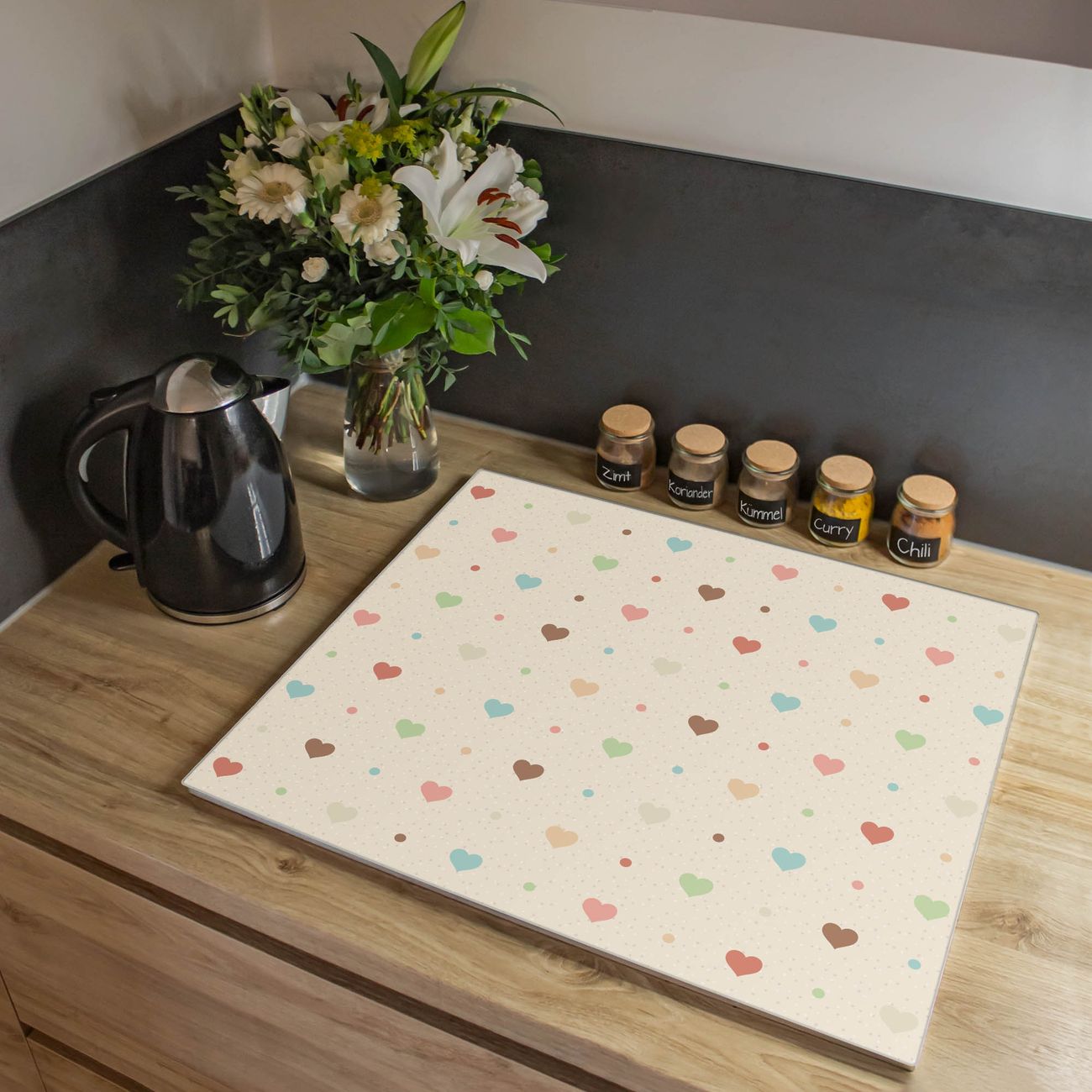 Herdabdeckplatte 1, 2 und 3 teilig Motiv Herzen bunt