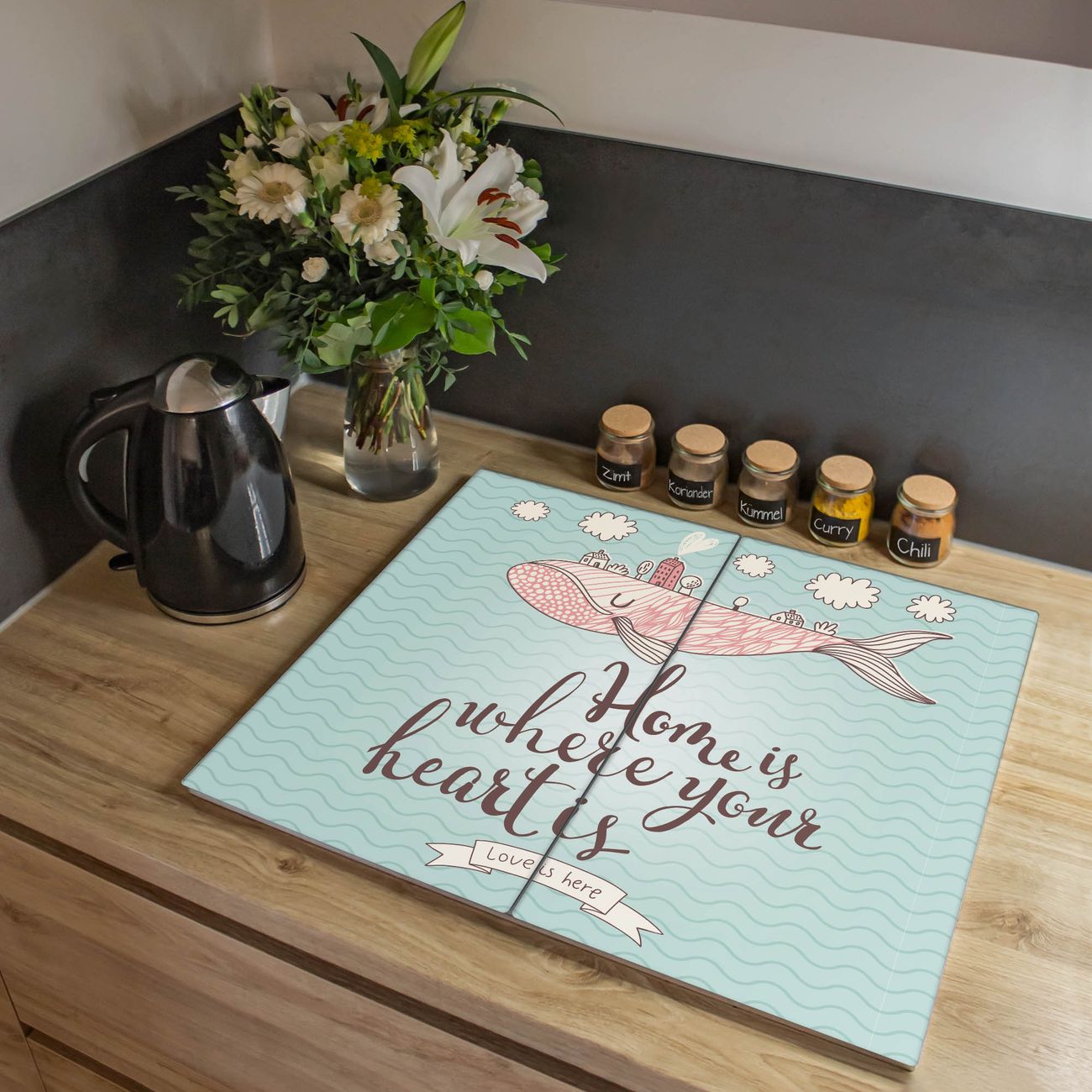 VIELSEITIG: Die Ceranfeldabdeckung ist vielseitig einsetzbar: ob als Spritzschutz hinter dem Herd für Ihre Küche oder als Glas Schneidebrett als hygienische und geruchsneutrale Unterlage. Sie können ebenfalls heiße Töpfe und Pfannen bis 100°C auf der Herdplattenabdeckung abstellen. Sie erhalten ein Multitalent für Ihre Küche. Die banjado Herdabdeckplatte aus Glas mit Motiv Herzensangelegenheit verdeckt mit einem schönen Motiv Ihr Ceranfeld bzw. Ihren Induktionsherd. Die Herdabdeckplatte ist vielseitig einsetzbar und passt sich dabei Ihrem Einrichtungsstil an. DESIGN: Die Herdabdeckung Herzensangelegenheit besteht aus hochwertigem, gehärtetem Glas mit einem unserer zahlreichen Motive. Sie haben die Wahl zwischen verschiedenen Maßen von einteiligen, zweiteiligen und einer dreiteiligen Herdabdeckung. Wählen Sie was zu Ihrer Einrichtung passt! DETAILS: Die Herdabdeckplatte ist vielseitig einsetzbar. Die Ecken sind für mehr Sicherheit dezent abgerundet, das Glas ist gehärtet. Sie erhalten separate Gummi Abstandshalter, damit Ihre Abdeckung rutschfest auf dem Herd steht. Diese können Sie frei positionieren, sodass die Herdabdeckung perfekt auf Ihrem Ceranfeld sitzt. BANJADO: Wir sind ein kleines Team aus dem Herzen von Sachsen und fertigen jeden Artikel nach Bestellung eigens für Sie an. Sie erhalten also keine preiswerte Importware, sondern Handarbeit. Auf Wunsch sind auch andere Farben und Größen möglich, kontakierten Sie uns gern.