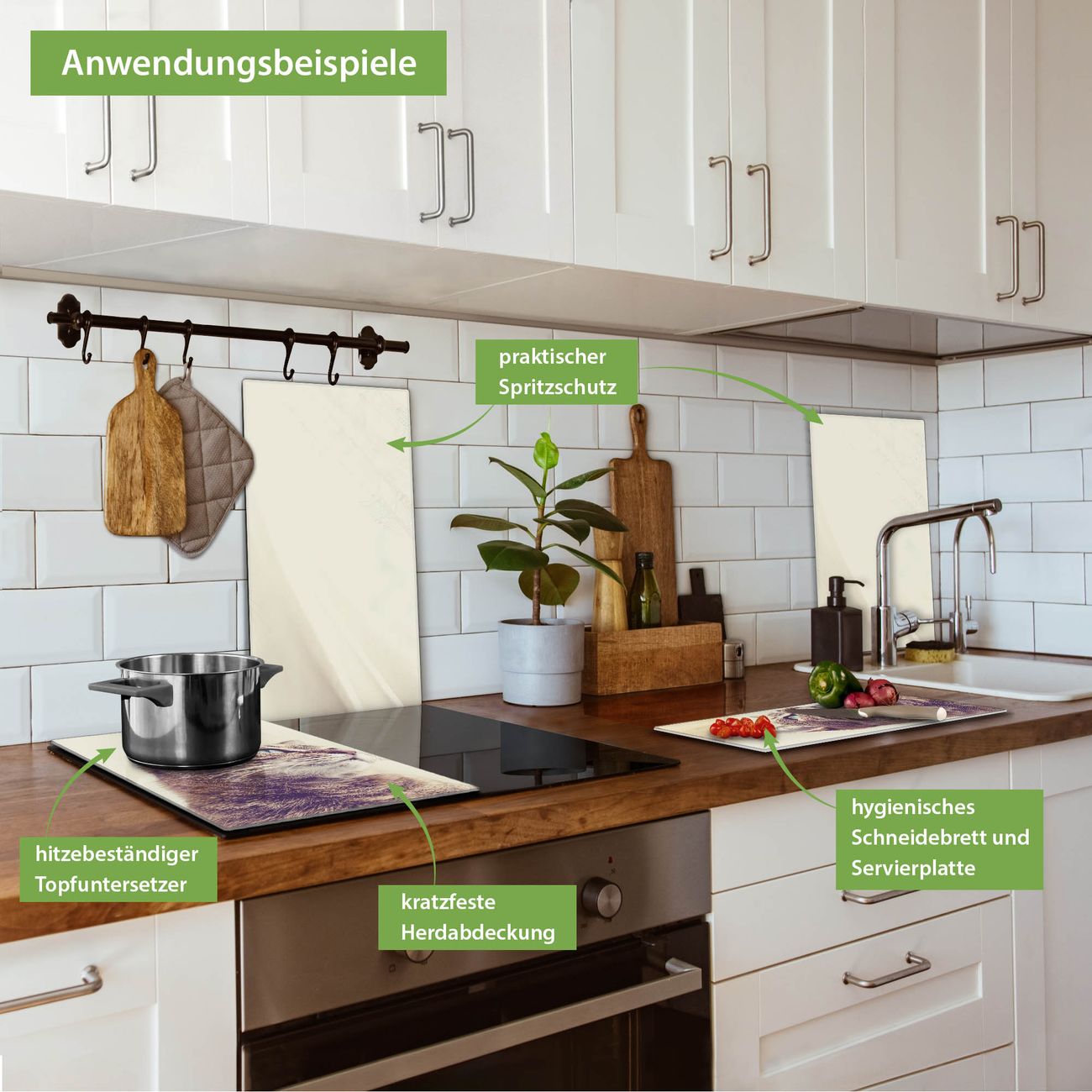 VIELSEITIG: Die Ceranfeldabdeckung ist vielseitig einsetzbar: ob als Spritzschutz hinter dem Herd für Ihre Küche oder als Glas Schneidebrett als hygienische und geruchsneutrale Unterlage. Sie können ebenfalls heiße Töpfe und Pfannen bis 100°C auf der Herdplattenabdeckung abstellen. Sie erhalten ein Multitalent für Ihre Küche. Die banjado Herdabdeckplatte aus Glas mit Motiv Holgerson verdeckt mit einem schönen Motiv Ihr Ceranfeld bzw. Ihren Induktionsherd. Die Herdabdeckplatte ist vielseitig einsetzbar und passt sich dabei Ihrem Einrichtungsstil an. DESIGN: Die Herdabdeckung Holgerson besteht aus hochwertigem, gehärtetem Glas mit einem unserer zahlreichen Motive. Sie haben die Wahl zwischen verschiedenen Maßen von einteiligen, zweiteiligen und einer dreiteiligen Herdabdeckung. Wählen Sie was zu Ihrer Einrichtung passt! DETAILS: Die Herdabdeckplatte ist vielseitig einsetzbar. Die Ecken sind für mehr Sicherheit dezent abgerundet, das Glas ist gehärtet. Sie erhalten separate Gummi Abstandshalter, damit Ihre Abdeckung rutschfest auf dem Herd steht. Diese können Sie frei positionieren, sodass die Herdabdeckung perfekt auf Ihrem Ceranfeld sitzt. BANJADO: Wir sind ein kleines Team aus dem Herzen von Sachsen und fertigen jeden Artikel nach Bestellung eigens für Sie an. Sie erhalten also keine preiswerte Importware, sondern Handarbeit. Auf Wunsch sind auch andere Farben und Größen möglich, kontakierten Sie uns gern.