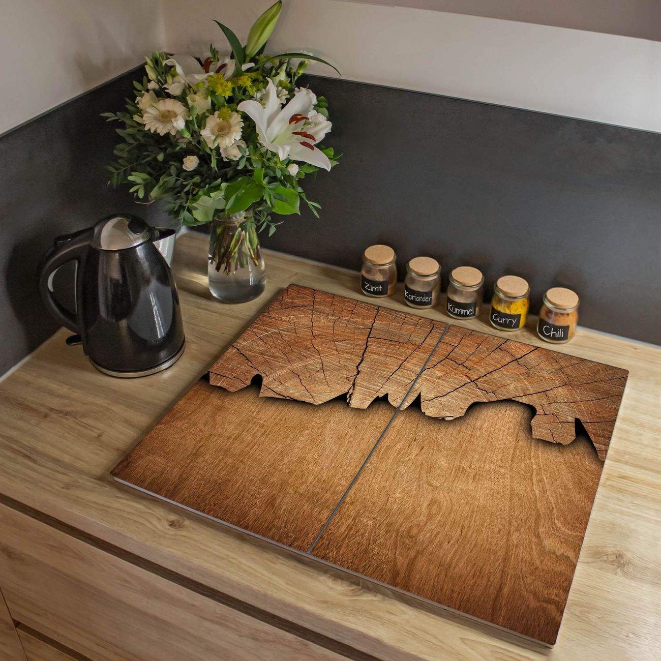 VIELSEITIG: Die Ceranfeldabdeckung ist vielseitig einsetzbar: ob als Spritzschutz hinter dem Herd für Ihre Küche oder als Glas Schneidebrett als hygienische und geruchsneutrale Unterlage. Sie können ebenfalls heiße Töpfe und Pfannen bis 100°C auf der Herdplattenabdeckung abstellen. Sie erhalten ein Multitalent für Ihre Küche. Die banjado Herdabdeckplatte aus Glas mit Motiv Holz verdeckt mit einem schönen Motiv Ihr Ceranfeld bzw. Ihren Induktionsherd. Die Herdabdeckplatte ist vielseitig einsetzbar und passt sich dabei Ihrem Einrichtungsstil an. DESIGN: Die Herdabdeckung Holz besteht aus hochwertigem, gehärtetem Glas mit einem unserer zahlreichen Motive. Sie haben die Wahl zwischen verschiedenen Maßen von einteiligen, zweiteiligen und einer dreiteiligen Herdabdeckung. Wählen Sie was zu Ihrer Einrichtung passt! DETAILS: Die Herdabdeckplatte ist vielseitig einsetzbar. Die Ecken sind für mehr Sicherheit dezent abgerundet, das Glas ist gehärtet. Sie erhalten separate Gummi Abstandshalter, damit Ihre Abdeckung rutschfest auf dem Herd steht. Diese können Sie frei positionieren, sodass die Herdabdeckung perfekt auf Ihrem Ceranfeld sitzt. BANJADO: Wir sind ein kleines Team aus dem Herzen von Sachsen und fertigen jeden Artikel nach Bestellung eigens für Sie an. Sie erhalten also keine preiswerte Importware, sondern Handarbeit. Auf Wunsch sind auch andere Farben und Größen möglich, kontakierten Sie uns gern.