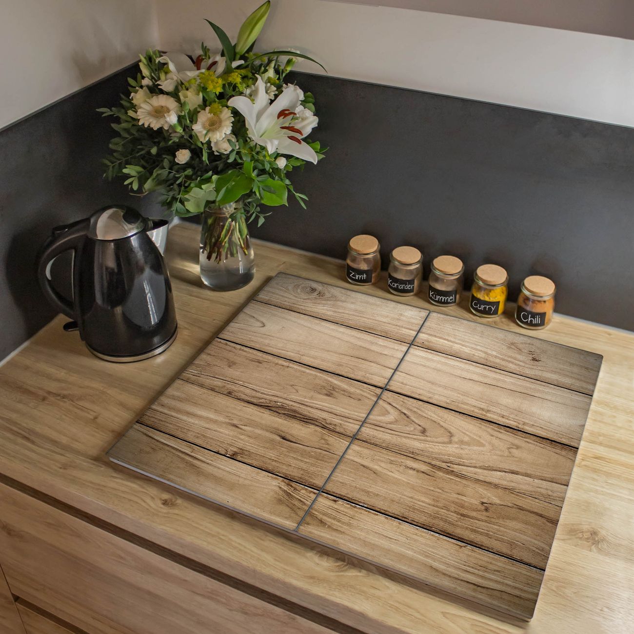 VIELSEITIG: Die Ceranfeldabdeckung ist vielseitig einsetzbar: ob als Spritzschutz hinter dem Herd für Ihre Küche oder als Glas Schneidebrett als hygienische und geruchsneutrale Unterlage. Sie können ebenfalls heiße Töpfe und Pfannen bis 100°C auf der Herdplattenabdeckung abstellen. Sie erhalten ein Multitalent für Ihre Küche. Die banjado Herdabdeckplatte aus Glas mit Motiv Holzplanken verdeckt mit einem schönen Motiv Ihr Ceranfeld bzw. Ihren Induktionsherd. Die Herdabdeckplatte ist vielseitig einsetzbar und passt sich dabei Ihrem Einrichtungsstil an. DESIGN: Die Herdabdeckung Holzplanken besteht aus hochwertigem, gehärtetem Glas mit einem unserer zahlreichen Motive. Sie haben die Wahl zwischen verschiedenen Maßen von einteiligen, zweiteiligen und einer dreiteiligen Herdabdeckung. Wählen Sie was zu Ihrer Einrichtung passt! DETAILS: Die Herdabdeckplatte ist vielseitig einsetzbar. Die Ecken sind für mehr Sicherheit dezent abgerundet, das Glas ist gehärtet. Sie erhalten separate Gummi Abstandshalter, damit Ihre Abdeckung rutschfest auf dem Herd steht. Diese können Sie frei positionieren, sodass die Herdabdeckung perfekt auf Ihrem Ceranfeld sitzt. BANJADO: Wir sind ein kleines Team aus dem Herzen von Sachsen und fertigen jeden Artikel nach Bestellung eigens für Sie an. Sie erhalten also keine preiswerte Importware, sondern Handarbeit. Auf Wunsch sind auch andere Farben und Größen möglich, kontakierten Sie uns gern.