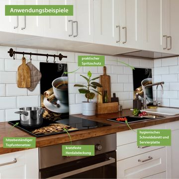VIELSEITIG: Die Ceranfeldabdeckung ist vielseitig einsetzbar: ob als Spritzschutz hinter dem Herd für Ihre Küche oder als Glas Schneidebrett als hygienische und geruchsneutrale Unterlage. Sie können ebenfalls heiße Töpfe und Pfannen bis 100°C auf der Herdplattenabdeckung abstellen. Sie erhalten ein Multitalent für Ihre Küche. Die banjado Herdabdeckplatte aus Glas mit Motiv Hot Coffee verdeckt mit einem schönen Motiv Ihr Ceranfeld bzw. Ihren Induktionsherd. Die Herdabdeckplatte ist vielseitig einsetzbar und passt sich dabei Ihrem Einrichtungsstil an. DESIGN: Die Herdabdeckung Hot Coffee besteht aus hochwertigem, gehärtetem Glas mit einem unserer zahlreichen Motive. Sie haben die Wahl zwischen verschiedenen Maßen von einteiligen, zweiteiligen und einer dreiteiligen Herdabdeckung. Wählen Sie was zu Ihrer Einrichtung passt! DETAILS: Die Herdabdeckplatte ist vielseitig einsetzbar. Die Ecken sind für mehr Sicherheit dezent abgerundet, das Glas ist gehärtet. Sie erhalten separate Gummi Abstandshalter, damit Ihre Abdeckung rutschfest auf dem Herd steht. Diese können Sie frei positionieren, sodass die Herdabdeckung perfekt auf Ihrem Ceranfeld sitzt. BANJADO: Wir sind ein kleines Team aus dem Herzen von Sachsen und fertigen jeden Artikel nach Bestellung eigens für Sie an. Sie erhalten also keine preiswerte Importware, sondern Handarbeit. Auf Wunsch sind auch andere Farben und Größen möglich, kontakierten Sie uns gern.