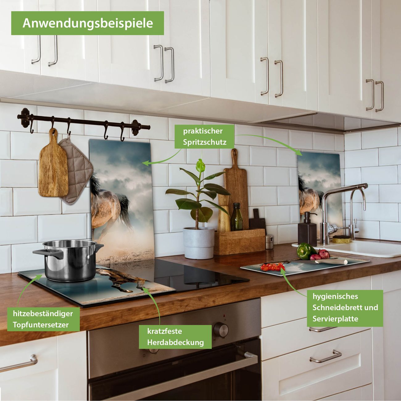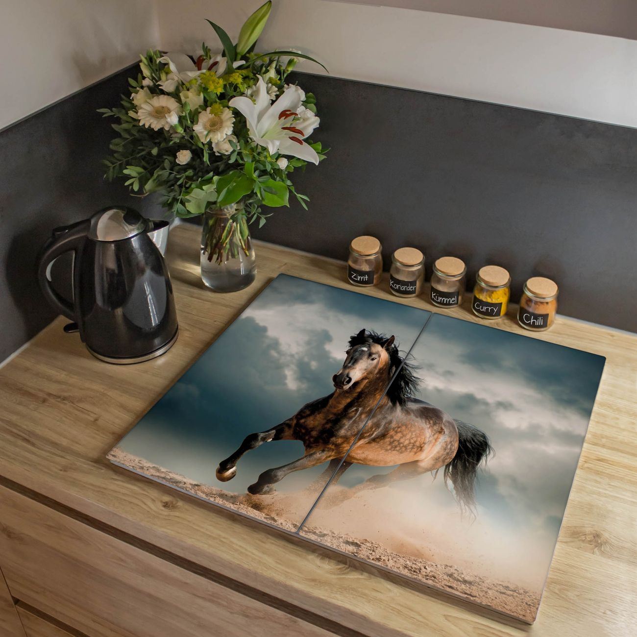 VIELSEITIG: Die Ceranfeldabdeckung ist vielseitig einsetzbar: ob als Spritzschutz hinter dem Herd für Ihre Küche oder als Glas Schneidebrett als hygienische und geruchsneutrale Unterlage. Sie können ebenfalls heiße Töpfe und Pfannen bis 100°C auf der Herdplattenabdeckung abstellen. Sie erhalten ein Multitalent für Ihre Küche. Die banjado Herdabdeckplatte aus Glas mit Motiv Ibrahim verdeckt mit einem schönen Motiv Ihr Ceranfeld bzw. Ihren Induktionsherd. Die Herdabdeckplatte ist vielseitig einsetzbar und passt sich dabei Ihrem Einrichtungsstil an. DESIGN: Die Herdabdeckung Ibrahim besteht aus hochwertigem, gehärtetem Glas mit einem unserer zahlreichen Motive. Sie haben die Wahl zwischen verschiedenen Maßen von einteiligen, zweiteiligen und einer dreiteiligen Herdabdeckung. Wählen Sie was zu Ihrer Einrichtung passt! DETAILS: Die Herdabdeckplatte ist vielseitig einsetzbar. Die Ecken sind für mehr Sicherheit dezent abgerundet, das Glas ist gehärtet. Sie erhalten separate Gummi Abstandshalter, damit Ihre Abdeckung rutschfest auf dem Herd steht. Diese können Sie frei positionieren, sodass die Herdabdeckung perfekt auf Ihrem Ceranfeld sitzt. BANJADO: Wir sind ein kleines Team aus dem Herzen von Sachsen und fertigen jeden Artikel nach Bestellung eigens für Sie an. Sie erhalten also keine preiswerte Importware, sondern Handarbeit. Auf Wunsch sind auch andere Farben und Größen möglich, kontakierten Sie uns gern.