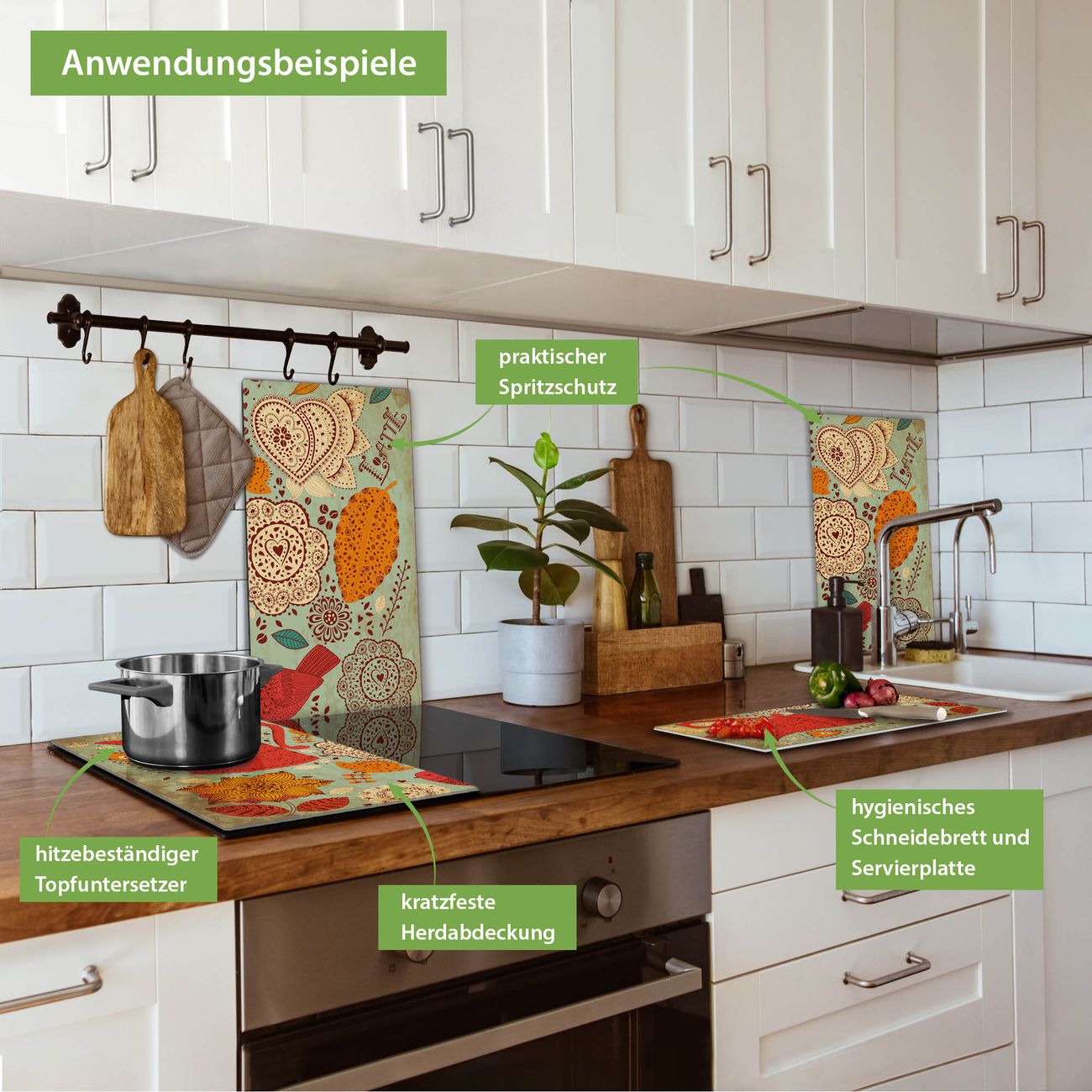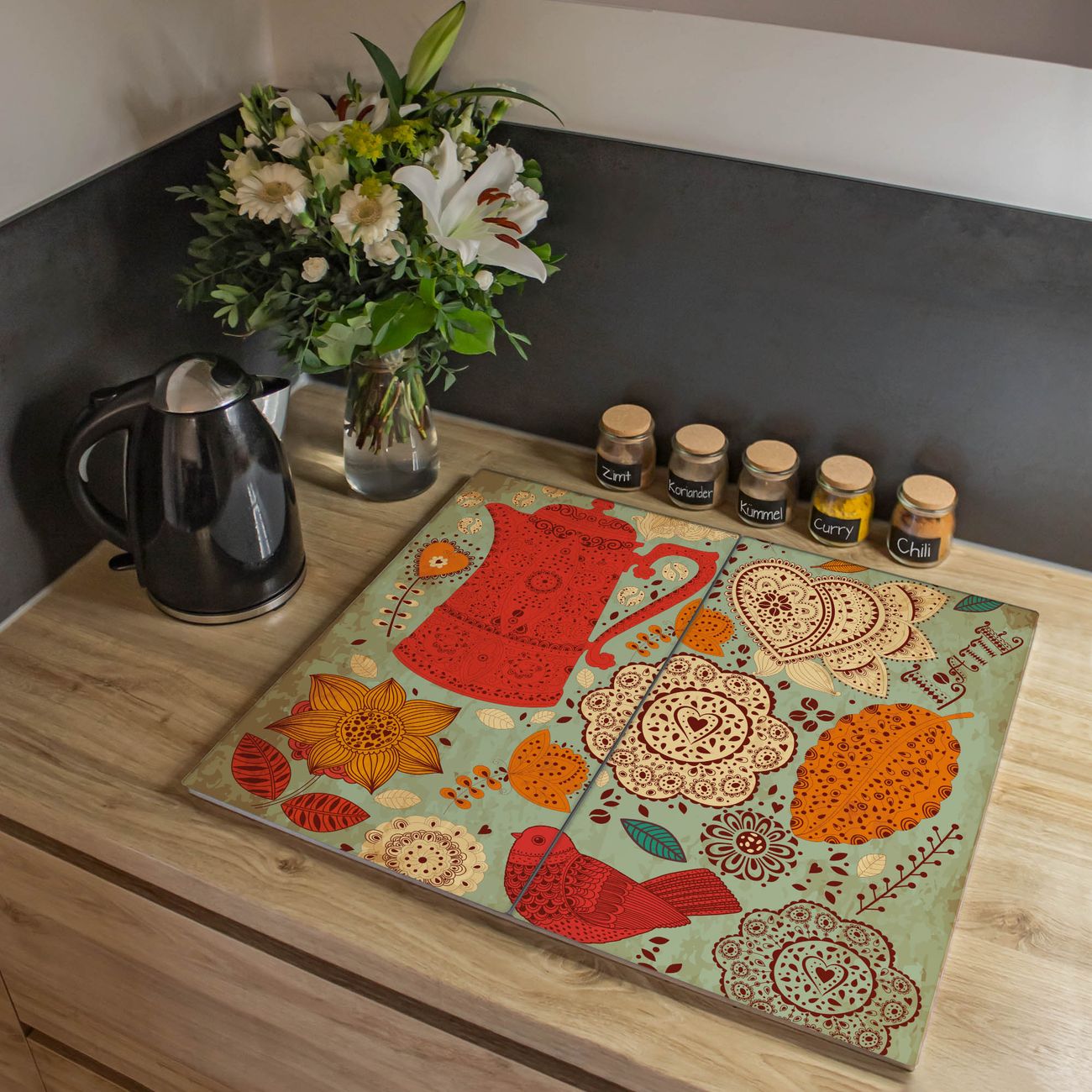VIELSEITIG: Die Ceranfeldabdeckung ist vielseitig einsetzbar: ob als Spritzschutz hinter dem Herd für Ihre Küche oder als Glas Schneidebrett als hygienische und geruchsneutrale Unterlage. Sie können ebenfalls heiße Töpfe und Pfannen bis 100°C auf der Herdplattenabdeckung abstellen. Sie erhalten ein Multitalent für Ihre Küche. Die banjado Herdabdeckplatte aus Glas mit Motiv Indischer Kaffee verdeckt mit einem schönen Motiv Ihr Ceranfeld bzw. Ihren Induktionsherd. Die Herdabdeckplatte ist vielseitig einsetzbar und passt sich dabei Ihrem Einrichtungsstil an. DESIGN: Die Herdabdeckung Indischer Kaffee besteht aus hochwertigem, gehärtetem Glas mit einem unserer zahlreichen Motive. Sie haben die Wahl zwischen verschiedenen Maßen von einteiligen, zweiteiligen und einer dreiteiligen Herdabdeckung. Wählen Sie was zu Ihrer Einrichtung passt! DETAILS: Die Herdabdeckplatte ist vielseitig einsetzbar. Die Ecken sind für mehr Sicherheit dezent abgerundet, das Glas ist gehärtet. Sie erhalten separate Gummi Abstandshalter, damit Ihre Abdeckung rutschfest auf dem Herd steht. Diese können Sie frei positionieren, sodass die Herdabdeckung perfekt auf Ihrem Ceranfeld sitzt. BANJADO: Wir sind ein kleines Team aus dem Herzen von Sachsen und fertigen jeden Artikel nach Bestellung eigens für Sie an. Sie erhalten also keine preiswerte Importware, sondern Handarbeit. Auf Wunsch sind auch andere Farben und Größen möglich, kontakierten Sie uns gern.