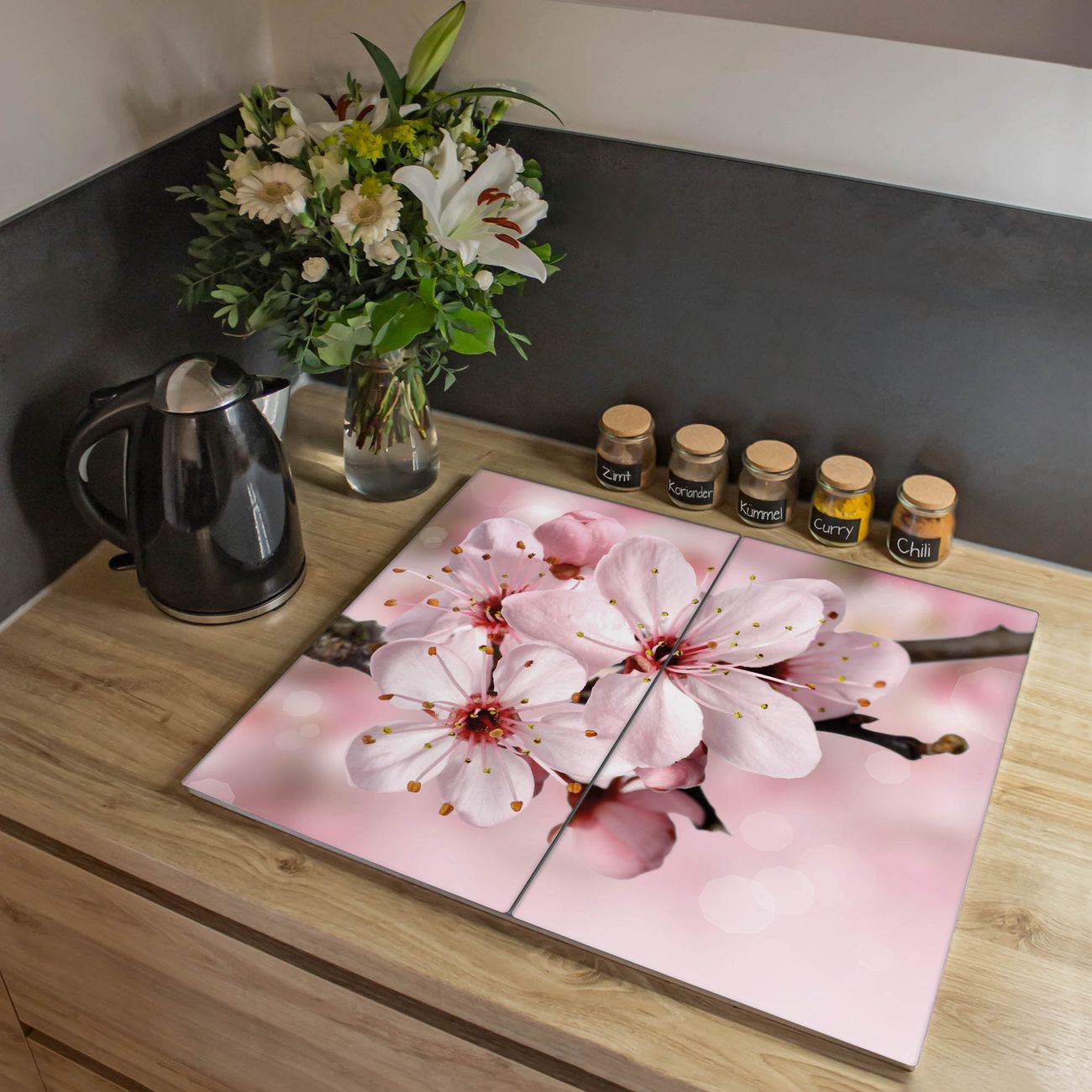 Herdabdeckplatte 1, 2 und 3 teilig Motiv Japanische Kirsche