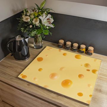 VIELSEITIG: Die Ceranfeldabdeckung ist vielseitig einsetzbar: ob als Spritzschutz hinter dem Herd für Ihre Küche oder als Glas Schneidebrett als hygienische und geruchsneutrale Unterlage. Sie können ebenfalls heiße Töpfe und Pfannen bis 100°C auf der Herdplattenabdeckung abstellen. Sie erhalten ein Multitalent für Ihre Küche. Die banjado Herdabdeckplatte aus Glas mit Motiv Käse verdeckt mit einem schönen Motiv Ihr Ceranfeld bzw. Ihren Induktionsherd. Die Herdabdeckplatte ist vielseitig einsetzbar und passt sich dabei Ihrem Einrichtungsstil an. DESIGN: Die Herdabdeckung Käse besteht aus hochwertigem, gehärtetem Glas mit einem unserer zahlreichen Motive. Sie haben die Wahl zwischen verschiedenen Maßen von einteiligen, zweiteiligen und einer dreiteiligen Herdabdeckung. Wählen Sie was zu Ihrer Einrichtung passt! DETAILS: Die Herdabdeckplatte ist vielseitig einsetzbar. Die Ecken sind für mehr Sicherheit dezent abgerundet, das Glas ist gehärtet. Sie erhalten separate Gummi Abstandshalter, damit Ihre Abdeckung rutschfest auf dem Herd steht. Diese können Sie frei positionieren, sodass die Herdabdeckung perfekt auf Ihrem Ceranfeld sitzt. BANJADO: Wir sind ein kleines Team aus dem Herzen von Sachsen und fertigen jeden Artikel nach Bestellung eigens für Sie an. Sie erhalten also keine preiswerte Importware, sondern Handarbeit. Auf Wunsch sind auch andere Farben und Größen möglich, kontakierten Sie uns gern.