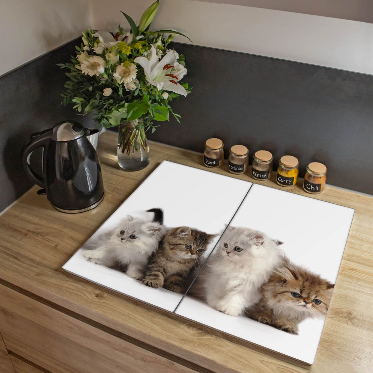 Herdabdeckplatte 1, 2 und 3 teilig Motiv Kaetzchen