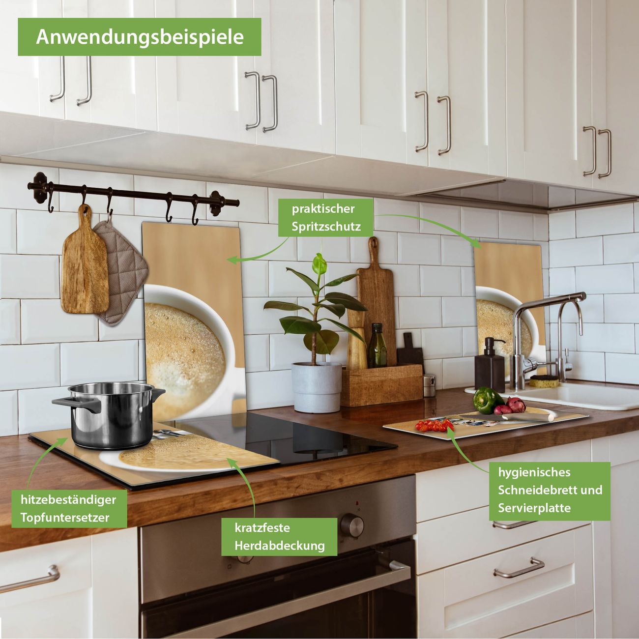 VIELSEITIG: Die Ceranfeldabdeckung ist vielseitig einsetzbar: ob als Spritzschutz hinter dem Herd für Ihre Küche oder als Glas Schneidebrett als hygienische und geruchsneutrale Unterlage. Sie können ebenfalls heiße Töpfe und Pfannen bis 100°C auf der Herdplattenabdeckung abstellen. Sie erhalten ein Multitalent für Ihre Küche. Die banjado Herdabdeckplatte aus Glas mit Motiv Kaffeepause verdeckt mit einem schönen Motiv Ihr Ceranfeld bzw. Ihren Induktionsherd. Die Herdabdeckplatte ist vielseitig einsetzbar und passt sich dabei Ihrem Einrichtungsstil an. DESIGN: Die Herdabdeckung Kaffeepause besteht aus hochwertigem, gehärtetem Glas mit einem unserer zahlreichen Motive. Sie haben die Wahl zwischen verschiedenen Maßen von einteiligen, zweiteiligen und einer dreiteiligen Herdabdeckung. Wählen Sie was zu Ihrer Einrichtung passt! DETAILS: Die Herdabdeckplatte ist vielseitig einsetzbar. Die Ecken sind für mehr Sicherheit dezent abgerundet, das Glas ist gehärtet. Sie erhalten separate Gummi Abstandshalter, damit Ihre Abdeckung rutschfest auf dem Herd steht. Diese können Sie frei positionieren, sodass die Herdabdeckung perfekt auf Ihrem Ceranfeld sitzt. BANJADO: Wir sind ein kleines Team aus dem Herzen von Sachsen und fertigen jeden Artikel nach Bestellung eigens für Sie an. Sie erhalten also keine preiswerte Importware, sondern Handarbeit. Auf Wunsch sind auch andere Farben und Größen möglich, kontakierten Sie uns gern.