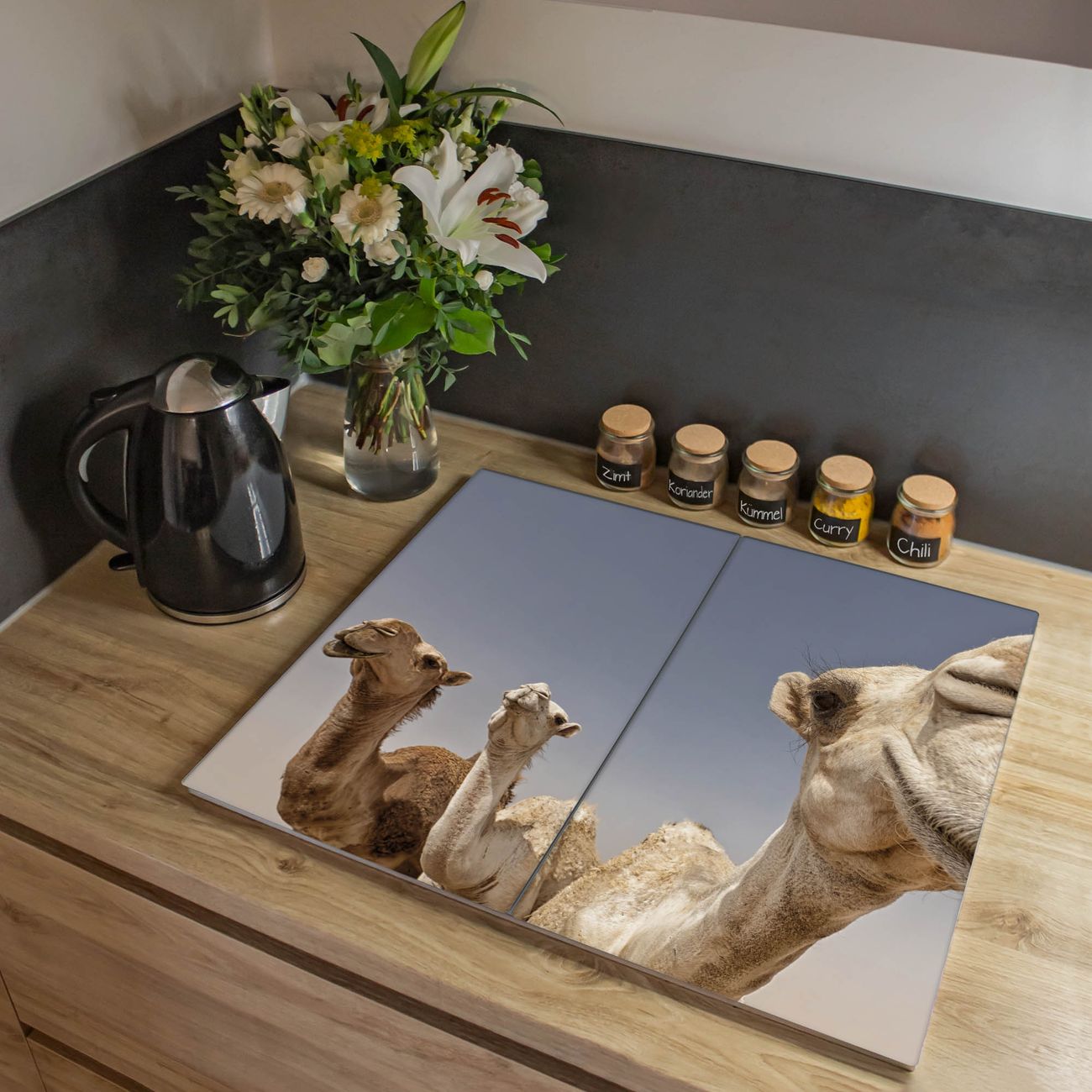 Herdabdeckplatte 1, 2 und 3 teilig Motiv Kamele