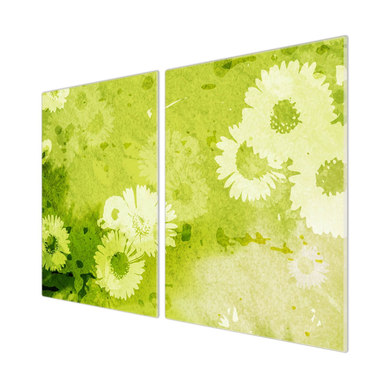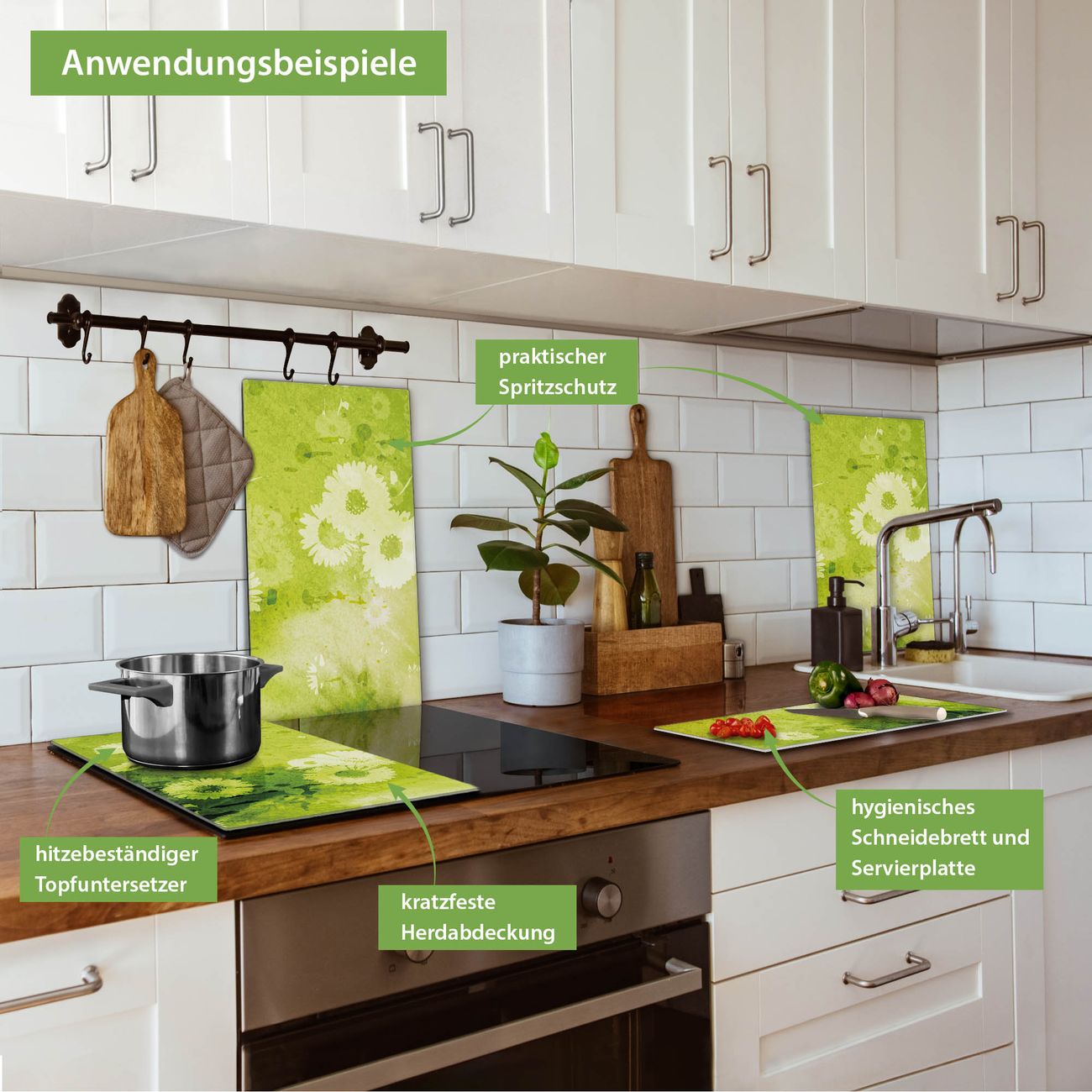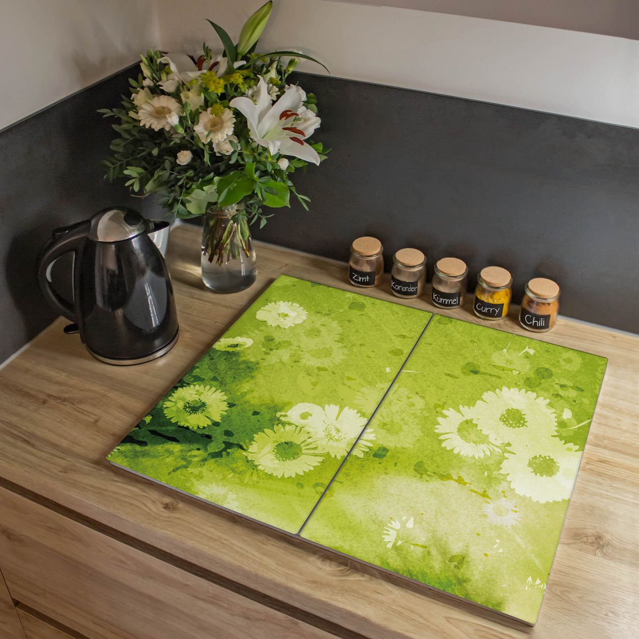 Herdabdeckplatte 1, 2 und 3 teilig Motiv Kamille Grün