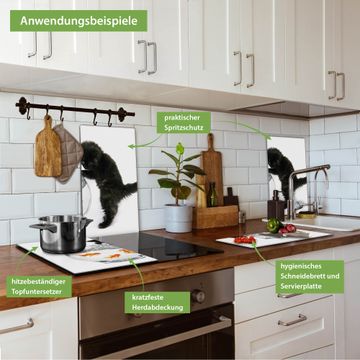 Herdabdeckplatte 1, 2 und 3 teilig Motiv Katze Und Fisch