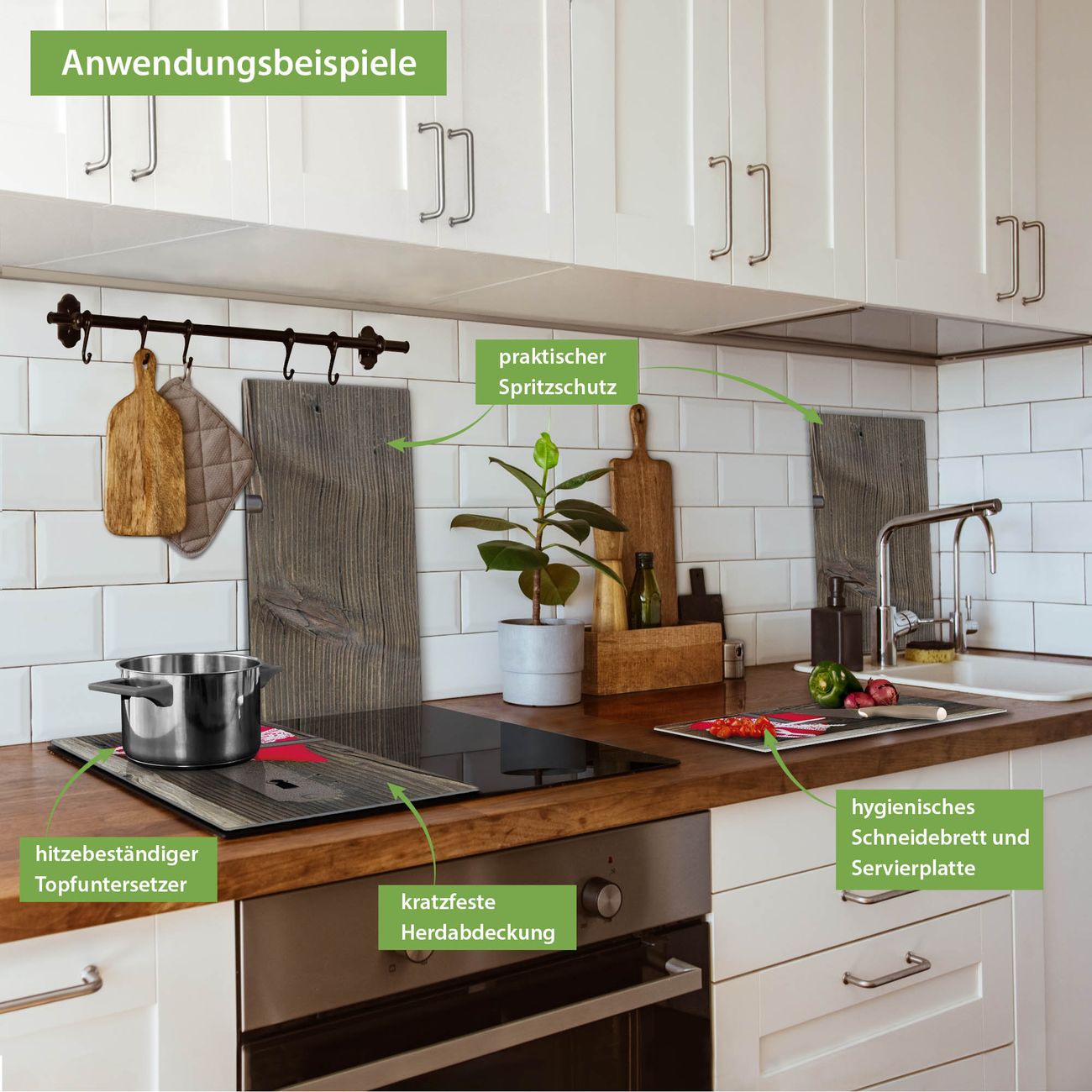 VIELSEITIG: Die Ceranfeldabdeckung ist vielseitig einsetzbar: ob als Spritzschutz hinter dem Herd für Ihre Küche oder als Glas Schneidebrett als hygienische und geruchsneutrale Unterlage. Sie können ebenfalls heiße Töpfe und Pfannen bis 100°C auf der Herdplattenabdeckung abstellen. Sie erhalten ein Multitalent für Ihre Küche. Die banjado Herdabdeckplatte aus Glas mit Motiv Knock On Your Door verdeckt mit einem schönen Motiv Ihr Ceranfeld bzw. Ihren Induktionsherd. Die Herdabdeckplatte ist vielseitig einsetzbar und passt sich dabei Ihrem Einrichtungsstil an. DESIGN: Die Herdabdeckung Knock On Your Door besteht aus hochwertigem, gehärtetem Glas mit einem unserer zahlreichen Motive. Sie haben die Wahl zwischen verschiedenen Maßen von einteiligen, zweiteiligen und einer dreiteiligen Herdabdeckung. Wählen Sie was zu Ihrer Einrichtung passt! DETAILS: Die Herdabdeckplatte ist vielseitig einsetzbar. Die Ecken sind für mehr Sicherheit dezent abgerundet, das Glas ist gehärtet. Sie erhalten separate Gummi Abstandshalter, damit Ihre Abdeckung rutschfest auf dem Herd steht. Diese können Sie frei positionieren, sodass die Herdabdeckung perfekt auf Ihrem Ceranfeld sitzt. BANJADO: Wir sind ein kleines Team aus dem Herzen von Sachsen und fertigen jeden Artikel nach Bestellung eigens für Sie an. Sie erhalten also keine preiswerte Importware, sondern Handarbeit. Auf Wunsch sind auch andere Farben und Größen möglich, kontakierten Sie uns gern.